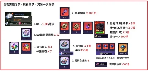 | 2. SSS職業箱子 x 12箱 職業招換卷 x 3000張 (別賣場沒有) |