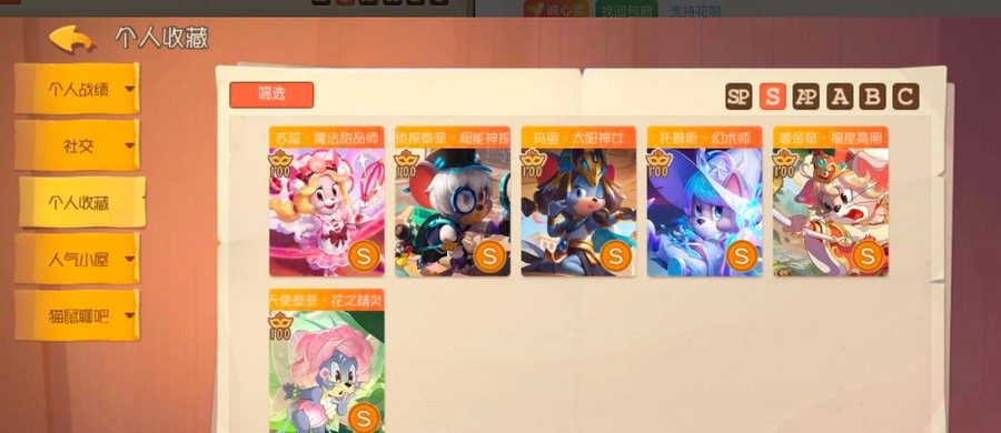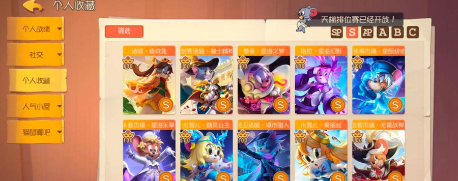 【MNBPC0369】4399 遊戲帳號,為本人自用帳號,收藏了數量可觀的《貓和老鼠》S 級皮膚;帳號內不僅有鉑金會員權益,還剩餘 5 個星星道具 詳情看圖【4399 帳號】【自主截圖】