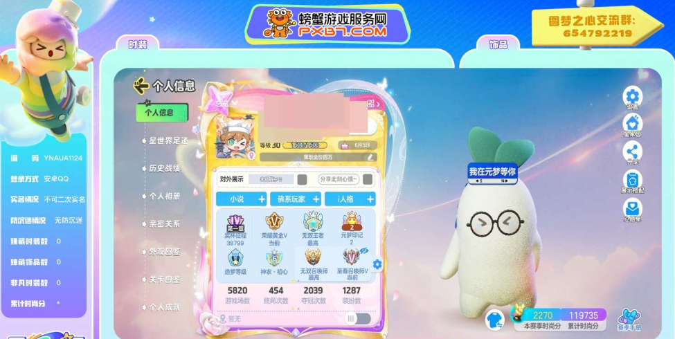 【YNAUA7007】賬號類型:皮膚號|實名情況:支持人臉包賠|有無防沉迷:無防沉迷|元夢月華 5 級 詳情看圖【安卓 QQ】【自主截圖】