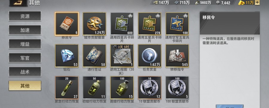 【ZVNAD7582】50 後城第一輕坦,戰令、大小月卡、投資、特訓均已開啟;另有 6 個 5 星兵卡自選箱,為潛力帳號,詳情見圖【自己截圖】