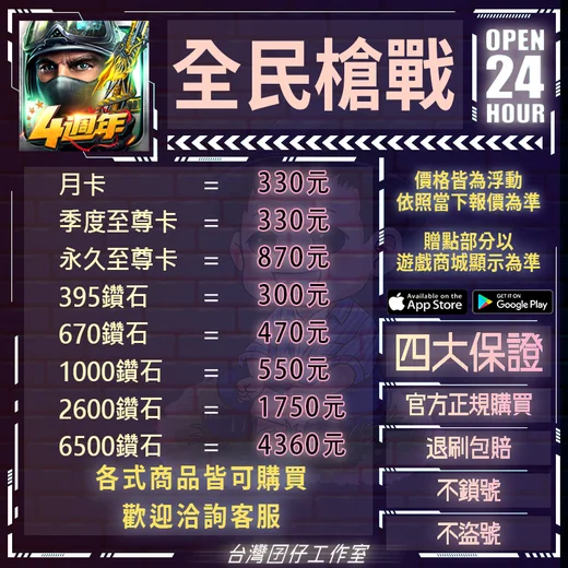 代儲【300鑽石=200元】 🔥全民槍戰陸服🏆24H客服🏆現貨秒出🔥台灣囝仔❤️