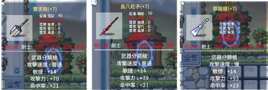 道具 【劍士金字長槍40~70整套】 雙天戟+長八蛇矛+銀龍槍 全都金字14敏21命中