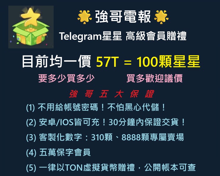 禮包 ⭐強哥電報⭐Telegram星星/高級會員贈禮~57T=100星🌟要多少買多少