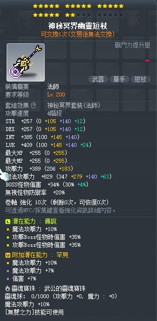 道具 【神秘冥界幽靈短杖】 22星 10%魔攻 武公 雙B魔 究極 傳罕 3S 魔攻17%傷害7%
