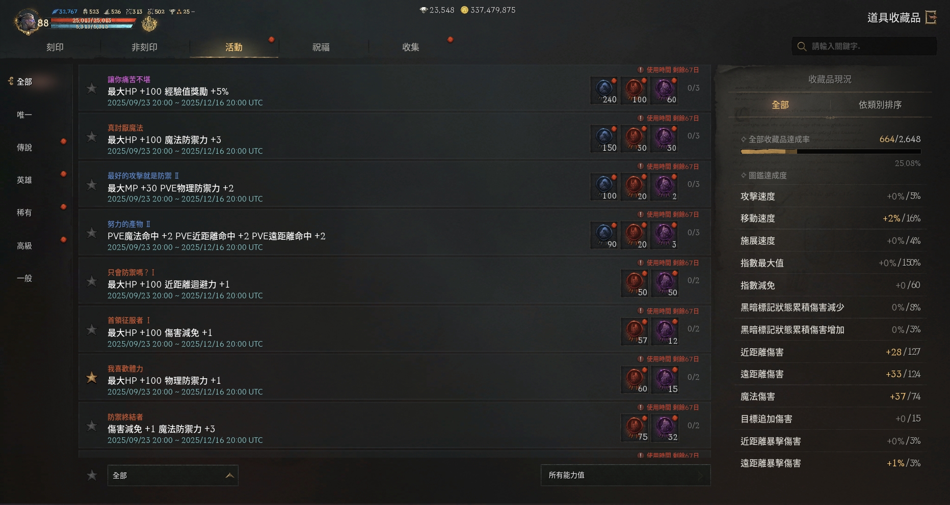 【總收藏】: 35.14% (遠傷+33、遠命+37、敏捷+14、物防+72、減傷+10)