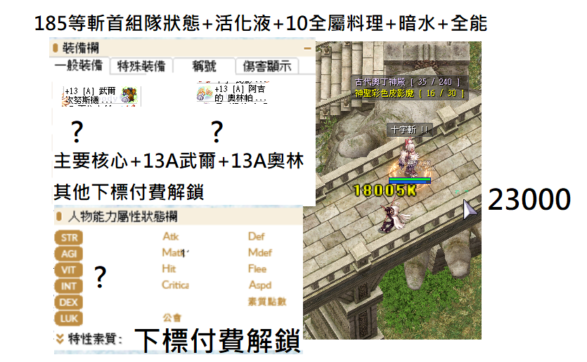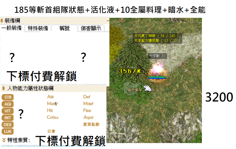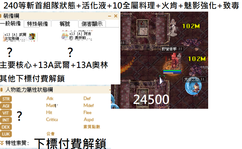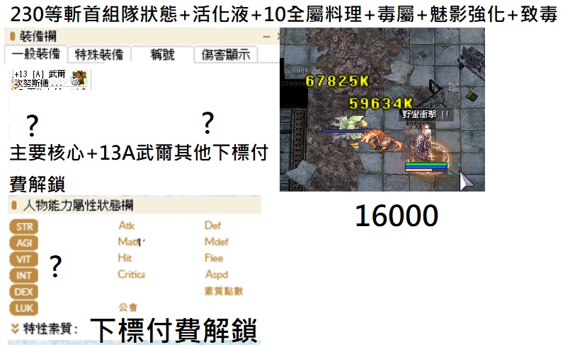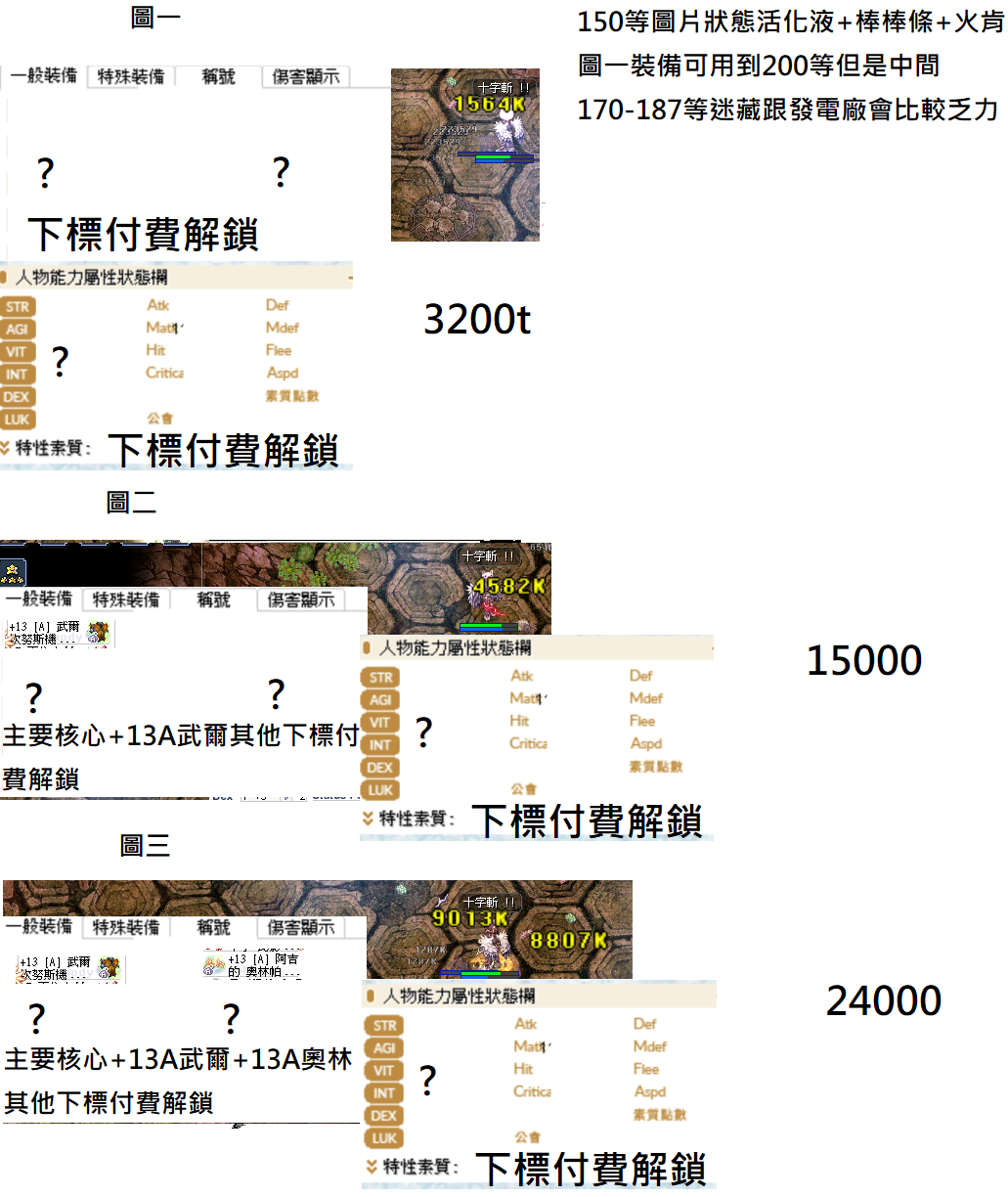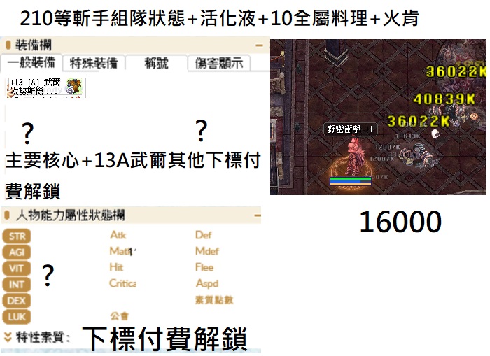130-260各階段等級斬首的造價配裝傷害 有不懂都可以問 下標後會提供能力值 各種練功吃的料理