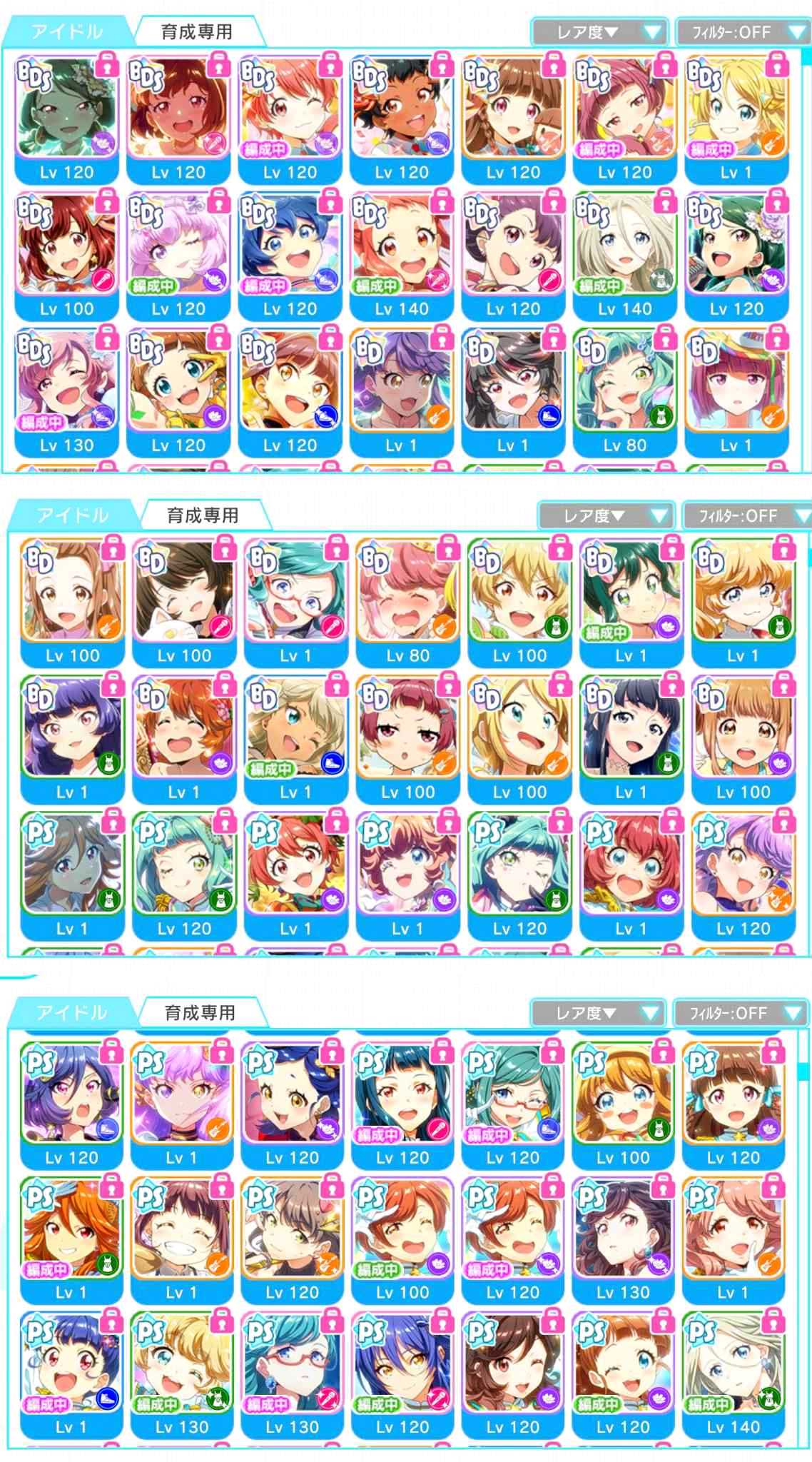 角色卡片最高品質為P卡及BD(生日)卡