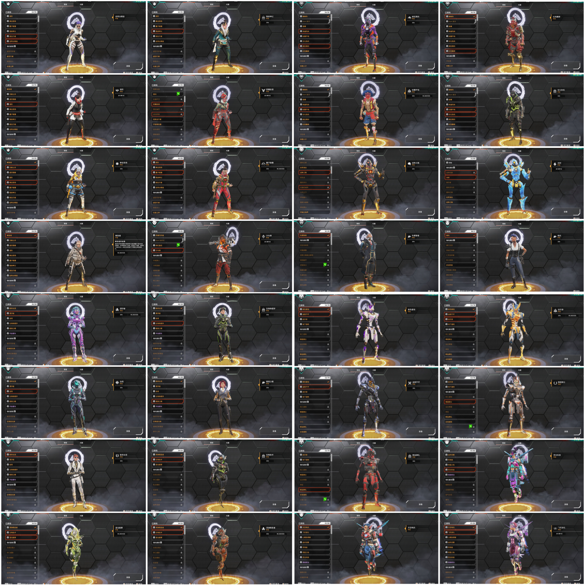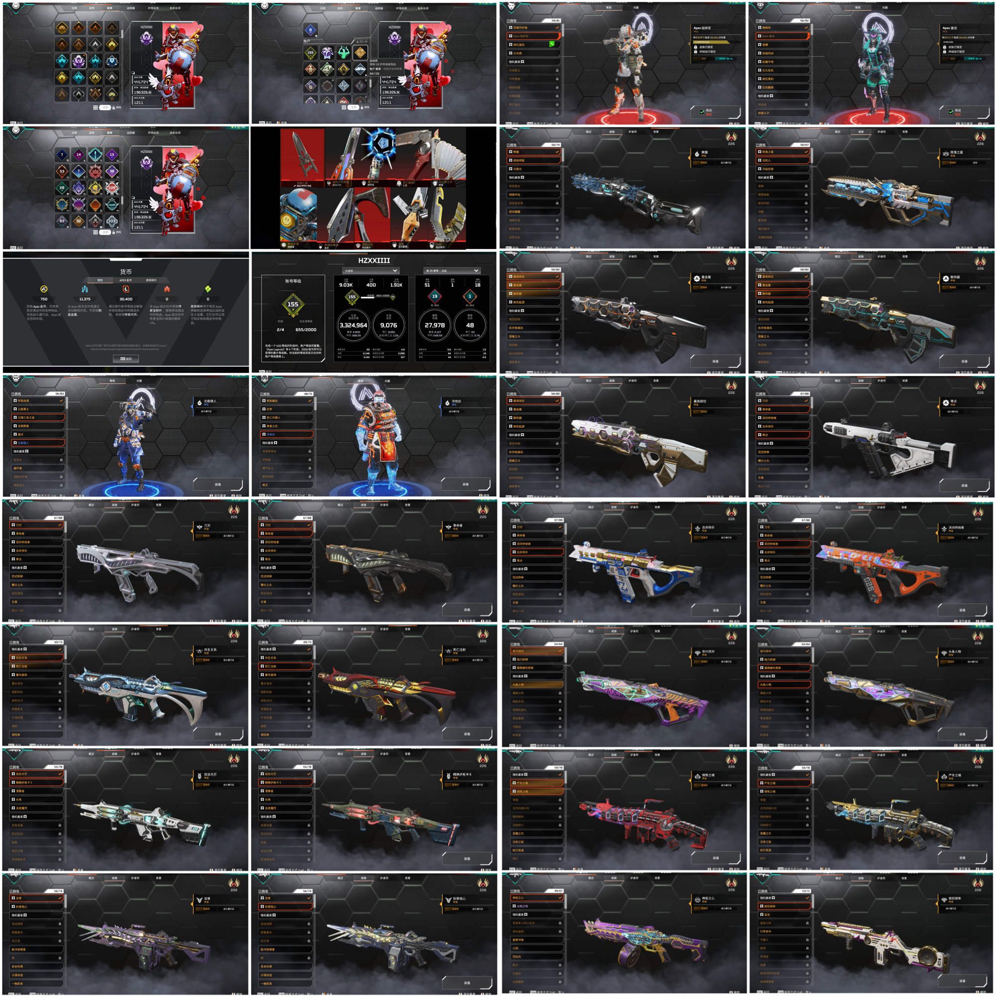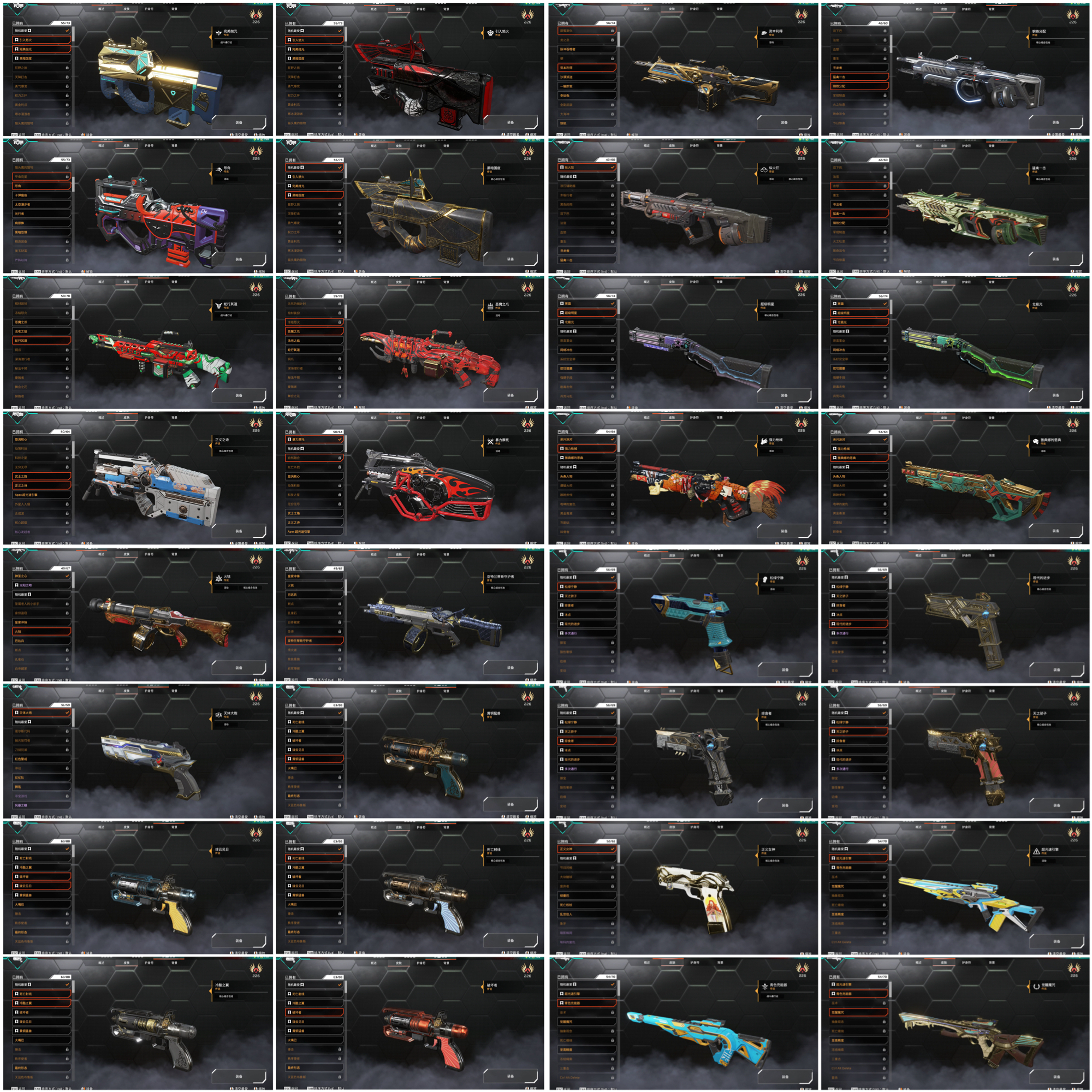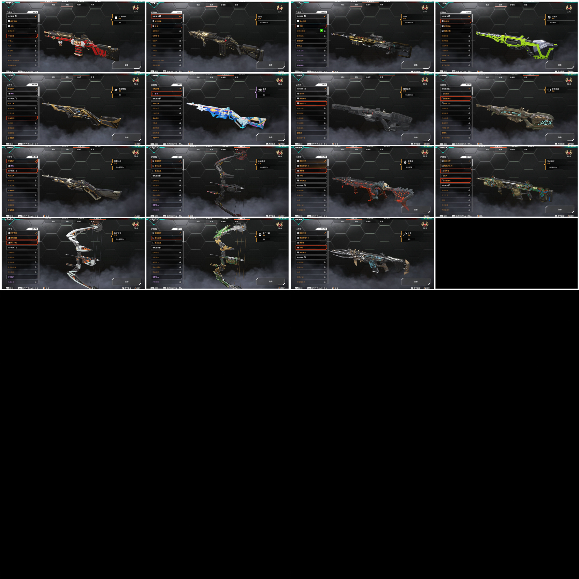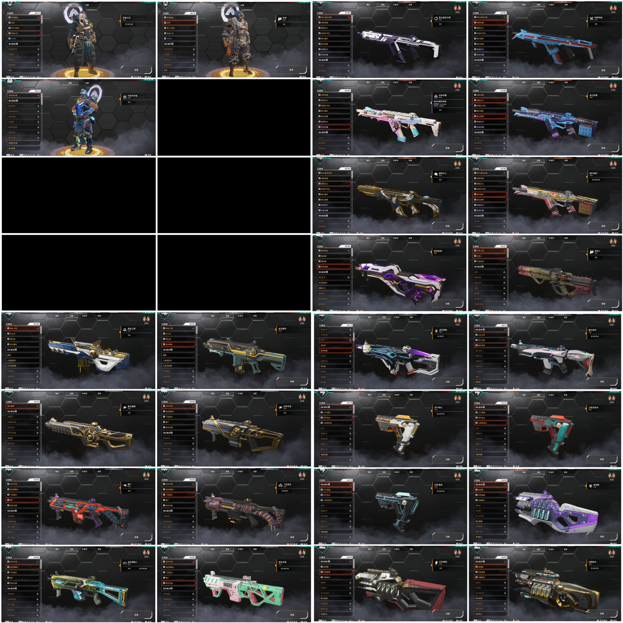 內容:進化皮「電沖.長弓.專注.r99.獒犬.噴火槍.eva8」、角色老皮膚/熱門皮膚皆有 歡迎參考圖