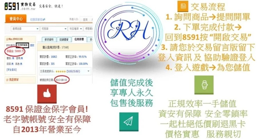 ❣️絕不刷退、絕不使用黑卡! 賣場儲值來源通過8591審核認證!!!(如附圖)❣️