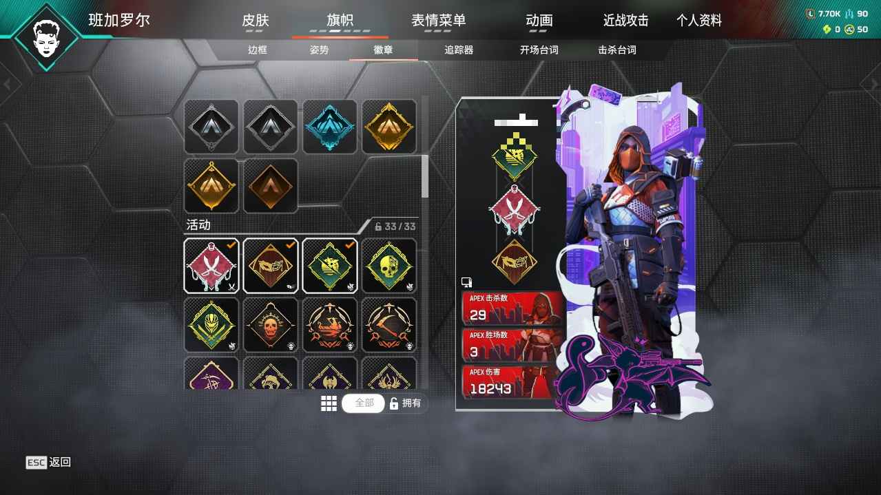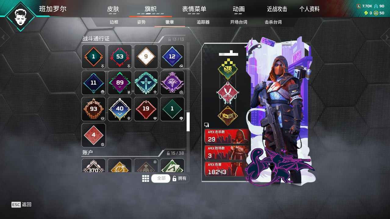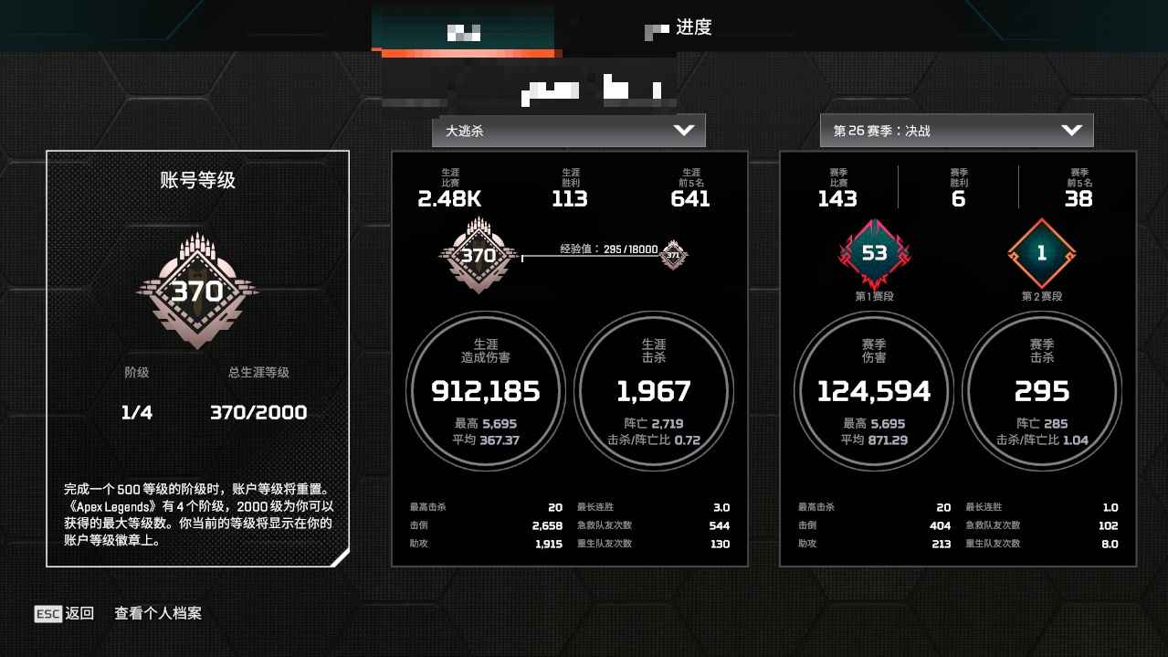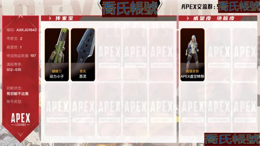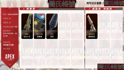 賽季滿級:S19賽季,S20賽季;傳家寶:沃特森-能量讀取,通用-鈷藍匕首,稀有皮膚:最高段位