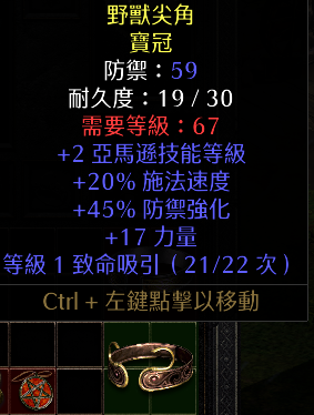 道具 (非)天梯S12賽季10/4開跑:+2亞馬遜技能 +20高施 +17力 黃色寶冠