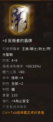 賣+8反叛者的盾牌 (閃光聖騎士拿雙手劍 最屌頂盾牌 傷害減免+50 封頂!!)