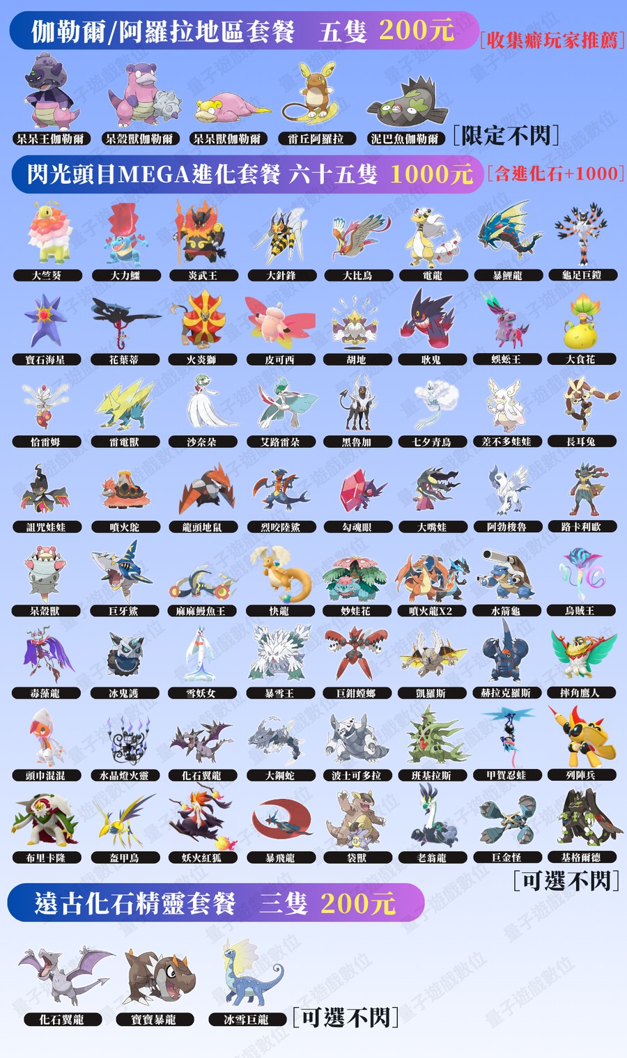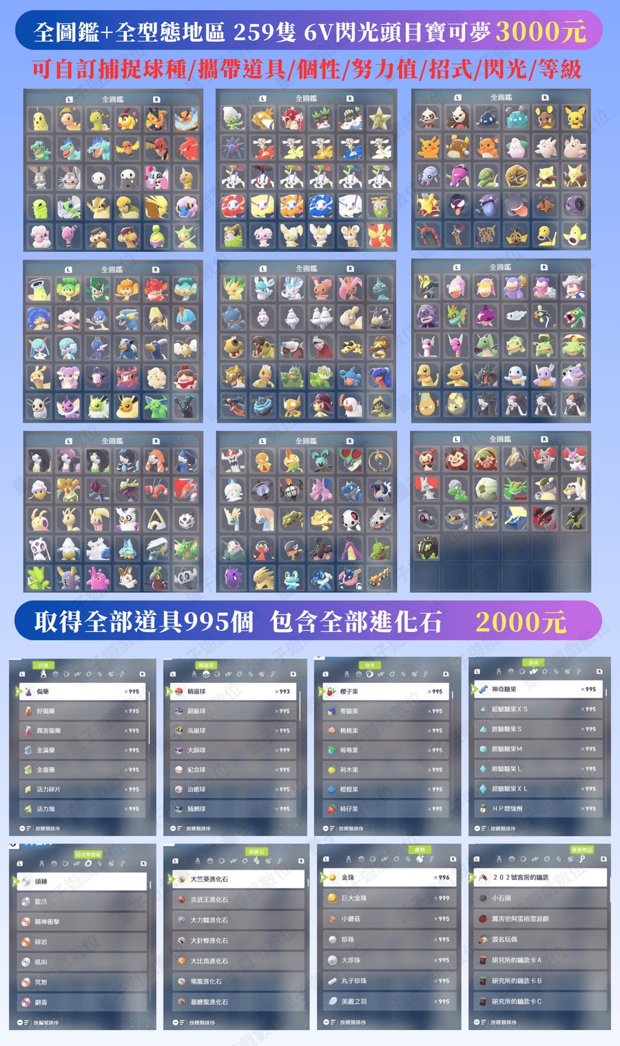 禮包F:全圖鑑259隻6V閃光頭目寶可夢=3000元
