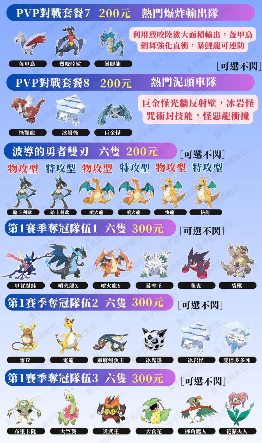 套餐全部寶可夢都默認6V閃光頭目精靈,親名免費贈送!
