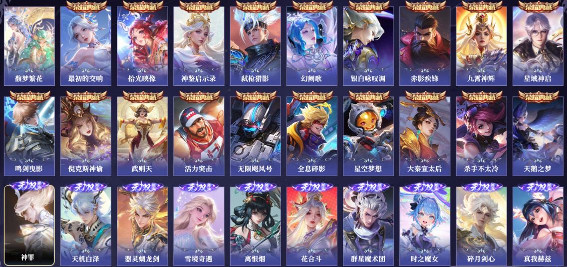 C3117J 號 【省標8】 貴族榮耀10 榮耀典藏21 珍品無雙1 無雙10 珍品傳說7 星傳說14 傳說皮膚122 星元套裝54 史詩皮膚247 打野42段 皮膚數量685 皮膚價值:931492 天幕19 英雄* 無雙王者 總場次14829