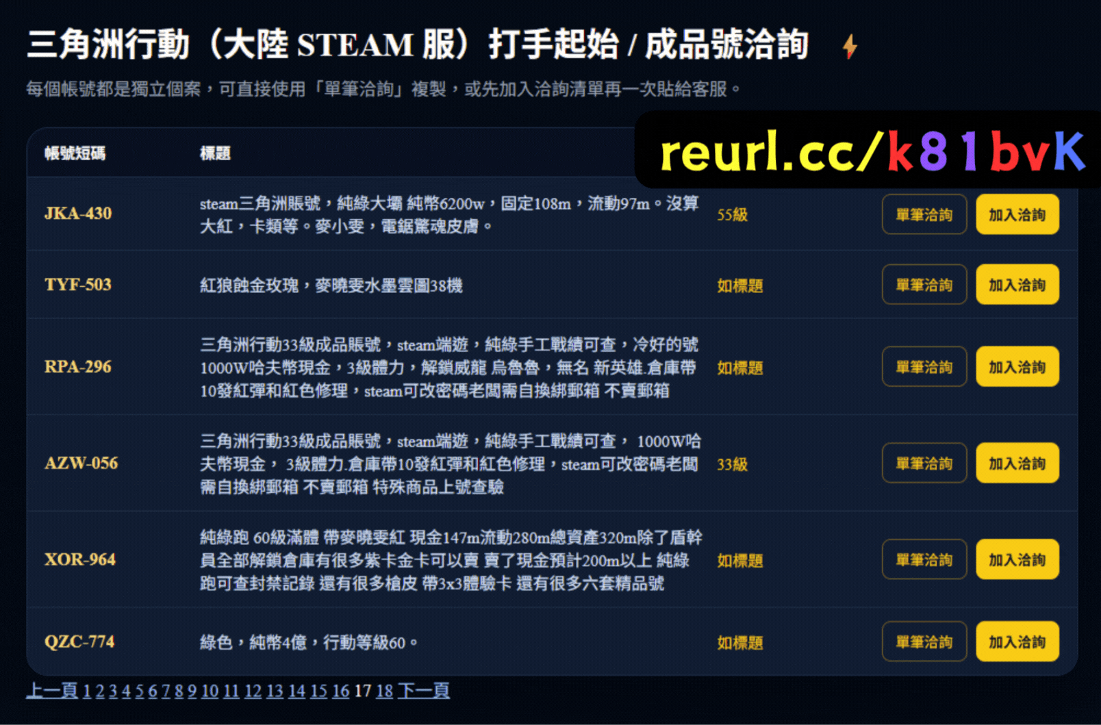 [A1] 陸服Steam(起始 / 成品號)選號網址(大小寫打對) => reurl.cc/k81bvK