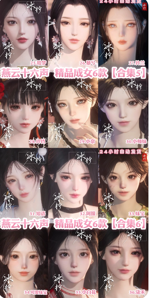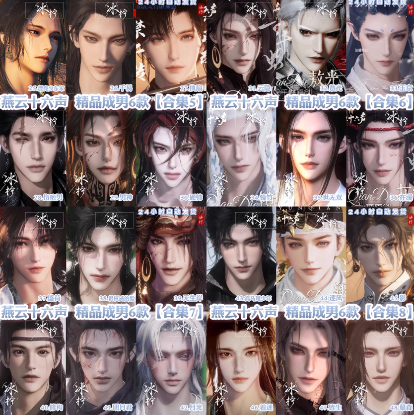 套裝:問春何苦/人間仙/烏紗紅漪/無間無相/晏平生/葬花吟/天上白玉京/月中天闕/雪滿川/滄海龍吟/風吟彼岸/樂神師延/青丘千歲/如碎霜天/劍影藏心/卿知吾心/金鱗闕/風花霧/快哉風/青玉案/山水壹硯/浣溪沙/鵲踏枝/清音曉/紫薇闕/賀新詞/雁還鄉/紅塵書/芳時歇/午風清/南風熏/望鄉客/逐紅花/遙夜行/江湖客/雨停荷/醉蓬萊/宿露輕盈/花月天真/驪山獵/舞花間/松花玉蘭/上青雲/鐵馬金戈/將星入命/赤沙/白龍/爭戈/縱橫/封侯/螭骨/暗香/白衣修羅/墨沈丹朱/燃金明/青陽/丹雀/落花聞詔/瑞鶴仙/青草原/夢尋虎跑/鯉傳尺素/阮郎歸/雪貍兒/雲遙鶴影/蓬萊翎/清河強者/金池鯉/翠羽顧/梨花淚/西極墜日/句芒/嘯月/蠍心蛟影/夜郎幽問/龍鳳纏/西涼鬼嘯/鵲銜夜/蜀戲春/穿雲遊雪/南疆秘語/歲時安/月如銀/九間當鋪/馳走西風/蟬翼未來
