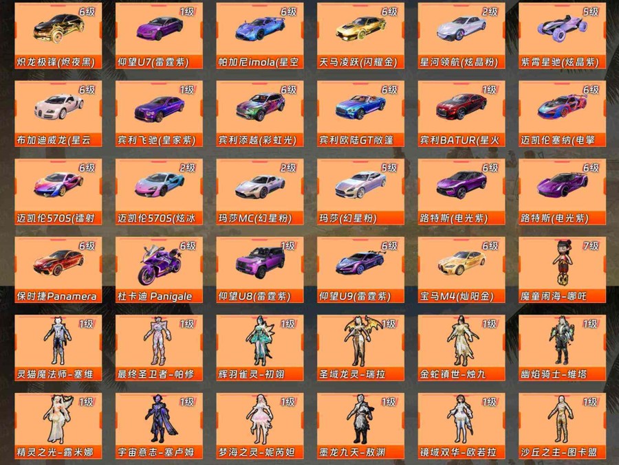 【HESYH7604】热力值:60028,4粉装,3粉枪,4载具,11粉色战备,121套装,187枪械,220装备,5滑翔尾翼,65降落伞;等级:Lv.69 历史最高段位:卓越王牌11星 当前段位:荣耀.皇冠Ⅲ;王牌印记16次 卓越印记3次 传奇印记1次; 【热门品类】:套装-火箭少女101,套装-潮萌小黄鸭,角色-军刀雅典娜,套装-龟仙人;【粉色套装】:粉装-梦幻火箭,粉装-银龙傲海,粉装-暗星紫秘,角色-羊梦糖心;【粉色枪械】:M416-风花雪月[7级],Kar98K-巳巳如意[5级],DP-28-豹影疾电[5级];【粉色载具】:兰博基尼URUS(明艳黄),双人摩托-梦幻火箭,兰博基尼AventadorSVJ(翡翠绿),玛莎拉蒂Ghibli(粉);【粉色滑翔尾翼】:天之羽翼飞行器,梦幻火箭飞行器;【粉色降落伞】:喜羊羊与灰太狼降落伞,神秘黑猫降落伞,暗夜玫瑰降落伞,炫彩糖果降落伞,梦幻火箭降落伞,圣域龙灵降落伞,异瞳寒姬降落伞,戏水时光降落伞,洛神天依降落伞;【其他套装】:套装-红色运动,套装-白色伏地魔,套装-骑行爱好者,套装-竞技名士,套装-黄色名流,套装-长空猛禽,套装-竞技勇士朋克,套装-海岛探路者,套装-灼焰舞者,套装-特殊使命,套装-灰色格斗者,套装-滨海假日,套装-千禧之恋,套装-神秘领域,套装-魅力单车,套装-幻世战舞者,套装-甜蜜熊情侣,套装-青涩时光,套装-龙魂突击队,套装-元素星魂,套装-极速红龙,套装-格斗先锋,套装-麻辣教官,套装-梦魇先生,套装-破蛋小黄鸡,套装-北国孤狼,套装-淡雅花蕊,套装-霓虹街区,套装-SS10特训,套装-萌黄之夏,套装-夏日音浪,套装-牛气满满,套装-白糯汤圆,套装-青春冒险家,套装-潮流游乐家,套装-骁骑迪迦,套装-萌趣颜团子,套装-特种颜团子,套装-战术大师,套装-SS18特训,套装-银白舞王,套装-耀粉歌者,套装-治愈之星,套装-科技之星,套装-SS13特训,套装-光影梦想家,套装-热情海星,套装-纯真浪花,套装-SS14特训,套装-电音精灵,套装-吉莉礼服,套装-星梦畅游,套装-SS15特训,套装-SS16特训,套装-暴风机械师,套装-SS17特训,套装-瑞龙福将,套装-团圆交子,套装-冰川谧蓝,套装-福星高照,套装-虎虎生威吉莉,套装-异彩先驱,套装-霓虹极客,套装-空投萌叽,套装-SS19特训,套装-飞驰魅影,套装-音速流光,套装-虚音幻奏,套装-SS21特训,套装-萌趣咩咩,套装-娇憨猪猪,套装-玉兔迎春,套装-SS22特训,套装-光之冒险,套装-绯格组合,套装-SS23特训,套装-王牌教练,套装-柠萌假日,套装-SS24特训,套装-SS25特训,套装-惊鸿侠骨,套装-锦衣飞扬,套装-果汁能量,套装-龙的传人,套装-冰河战士,套装-SS26特训,套装-空岛之星,套装-SS27特训,套装-恋语绒绒,套装-老实芭蕉,套装-SS28特训,套装-海盐绵绵冰,套装-蝶变,套装-SS29特训,角色-绯色魅影,套装-星途旅人,角色-糖霜甜心,套装-SS30特训,角色-夜瞳黯灵,套装-墨青刃影,套装-SS31特训,套装-鱼渊荷华,套装-燕燕于飞,套装-智谋强哥,套装-紫幽梦,套装-粉恋花,套装-SS32特训,套装-蓝冰羽,套装-SS34特训,套装-朱霞炽焰,套装-凌霄紫焰,套装-SS35特训,套装-SS36特训;其他枪械:QBZ-纯真浪花,QBZ-飞驰魅影,QBZ-彩虹符号,QBZ-暗翼战神,SCAR-L-生命誓言,SCAR-L-星途旅人,SCAR-L-海盐豹豹,SCAR-L-暗夜玫瑰,SCAR-L-玉兔迎春,M416-动感兔斯基,M416-暗星紫秘,M416-仓鼠灰灰,M416-糯团青竹,M416-蓝色火焰,M416-红色方程式,AKM-萌趣颜团子,AKM-夜灯,AKM-破晓战魂,AKM-彩虹符号,AKM-龙的传人,AKM-霓彩脉冲,ARX-凌霄紫焰,G36C-时空追击者,G36C-乌木金纹,G36C-暗夜玫瑰,Mk47-炫光之旅,Mk47-乌木金纹,Mk47-青春冒险家,M16A4-幻世战舞者,M16A4-甜心亚梦,M16A4-冰河战士,AUG-耀粉歌者,AUG-异域银装,AUG-天降萌叽,AUG-怪笑疯兔,AUG-纯梦嫁纱,AUG-青春冒险家,GROZA-治愈之星,GROZA-影袭,GROZA-异彩先驱,GROZA-彩虹符号,GROZA-海盐豹豹,M762-烈焰拳霸,M762-瑞龙福将,M762-彩虹甜喵,M762-天降萌叽,M762-镭射皇者,AC-VAL-天降萌叽,AC-VAL-甜心亚梦,AC-VAL-乌木金纹,蜜獾-天降萌叽,蜜獾-乌木金纹,蜜獾-娇憨猪猪,M200-惊鸿侠骨,M200-乌木金纹,AWM-乌木金纹,AWM-天降萌叽,AWM-纯真浪花,AWM-黄金龙骨,M24-治愈之星,M24-乌木金纹,Kar98K-飞驰魅影,Kar98K-终极赛罗,Kar98K-乌木金纹,Kar98K-梦幻火箭,莫辛纳甘-乌木金纹,AMR-超新星,AMR-喜羊羊与灰太狼,AMR-乌木金纹,Win94-乌木金纹,Win94-瑞龙福将,MK20-H-星途旅人,MK20-H-乌木金纹,Mini14-异彩先驱,Mini14-香桃花海,Mini14-耀粉歌者,SKS-炫彩节奏,SKS-时空追击者,VSS-碧影闪光,VSS-镭射皇者,MK12-乌木金纹,Mk14-乌木金纹,Mk14-紫幽梦,Mk14-冰河战士,Mk14-治愈之星,SLR-金丰海韵,SLR-娇憨猪猪,M417-惊鸿侠骨,QBU-青春冒险家,UZI-生命誓言,UZI-炫彩糖果,UZI-炫彩节奏,UZI-冰河战士,UZI-天降萌叽,UZI-啾咪啾咪,UZI-娇憨猪猪,UMP45-生命誓言,UMP45-时空追击者,UMP45-涂山之恋,UMP45-蓝色火焰,汤姆逊-银刃赛罗,汤姆逊-纯真浪花,汤姆逊-耀粉歌者,汤姆逊-天降萌叽,汤姆逊-异彩先驱,P90-巳巳如意,P90-飞驰魅影,P90-玩趣呆呆,P90-乌木金纹,野牛-夜灯,野牛-青春冒险家,野牛-燕燕于飞,野牛-乌木金纹,MP5K-异彩先驱,MP5K-乌木金纹,Vector-乌木金纹,Vector-燕燕于飞,Vector-治愈之星,Vector-生命誓言,JS9-凌霄紫焰,AKS-74U-乌木金纹,AKS-74U-粉粉喵呜,AA12-G-纯真浪花,DBS-创世救赎,DBS-乌木金纹,DBS-彩虹符号,DBS-时空追击者,DBS-甜心亚梦,S1897-紫幽梦,S1897-镭射皇者,S1897-乌木金纹,S1897-飞驰魅影,S1897-糯团青竹,S12K-玩趣呆呆,S12K-瑞龙福将,S12K-霓彩脉冲,S12K-乌木金纹,S12K-夜灯,S12K-娇憨猪猪,SPAS-12-乌木金纹,SPAS-12-燕燕于飞,S686-生命誓言,M249-乌木金纹,M249-彩虹符号,M249-镭射皇者,M249-糯团青竹,MG3-桃粉