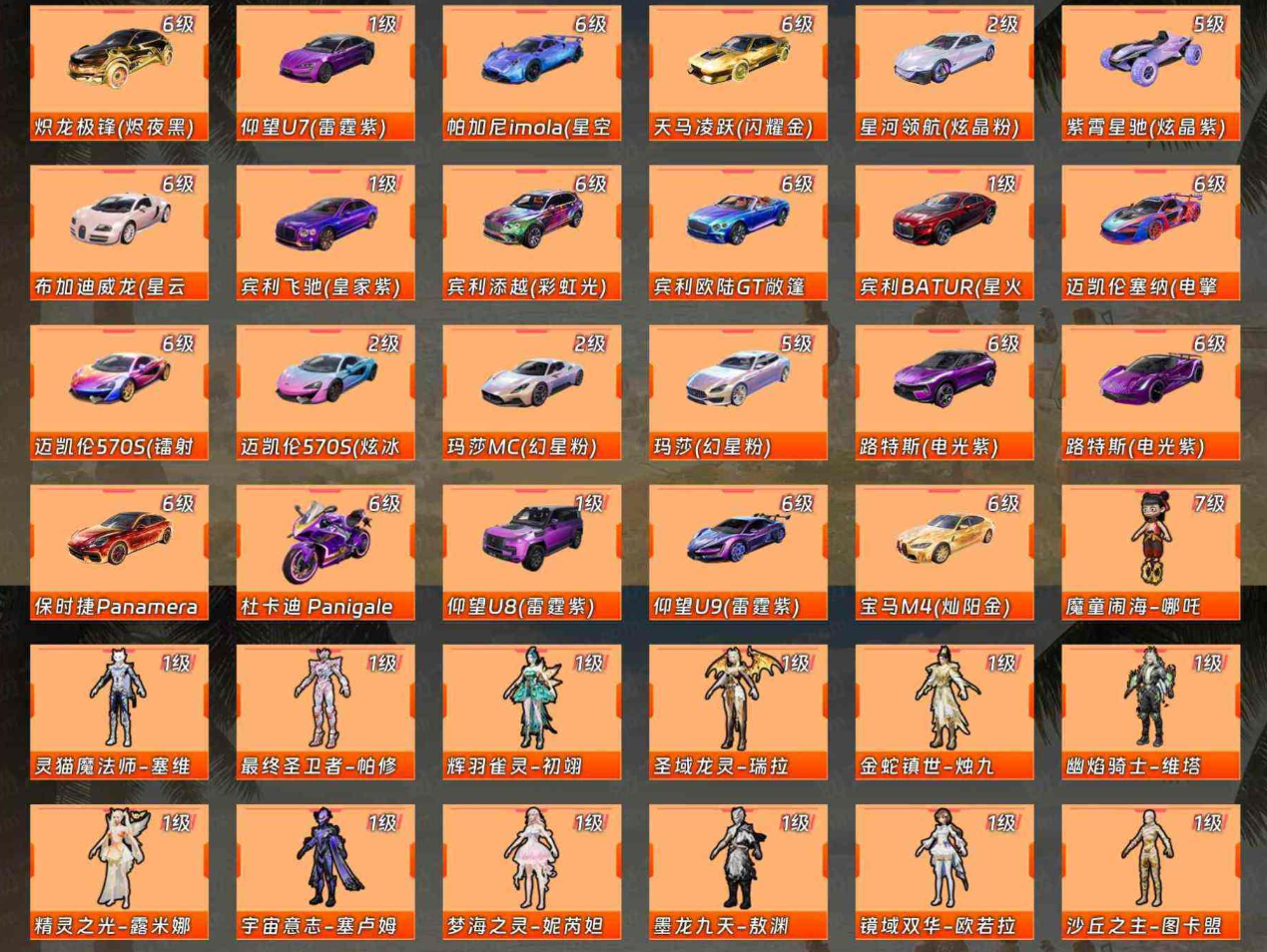 【HQYYX4294】热力值:45637,1神装,5粉装,8粉枪,2载具,14粉色战备,85套装,143枪械,146装备,5滑翔尾翼,41降落伞;等级:Lv.63 历史最高段位:无敌战神 当前段位:英勇.黄金Ⅰ;王牌印记14次 卓越印记4次 传奇印记4次 绝世印记4次; 【热门品类】:灵猫魔法师-塞维尔[2级],套装-都市猎人,套装-浪漫天命,套装-深海小丑鱼;【红色套装】:灵猫魔法师-塞维尔[2级];【粉色套装】:粉装-花间之火,角色-樱桃泡泡,角色-狂魅哈莉,角色-羊梦糖心,角色-花灵;【粉色枪械】:SCAR-L-纯梦嫁纱[6级],M416-灵猫魔法师[3级],M416-女娲灵识[2级],AUG-暖羊咩咩[5级],Kar98K-巳巳如意[5级],MK12-雪月幻音[4级],Vector-绯穹魔姬[4级],DP-28-豹影疾电[5级];【粉色载具】:虚妄之影(炫耀紫),玛莎拉蒂Quattroporte(夜幕蓝);【粉色滑翔尾翼】:彩虹独角兽飞行器,灵猫魔法师飞行器;【粉色降落伞】:星穹咏叹调降落伞,暗夜鎏金降落伞,绯穹魔姬降落伞,音爆索尼克降落伞,无垠阁降落伞,极限特训降落伞,灵猫魔法师降落伞,双重狂想降落伞,金丰海韵降落伞,飒粉甜心降落伞,花间之火降落伞,幻彩电音降落伞;【其他套装】:套装-竞技名士,套装-深蓝色名流,套装-酒红色名流,套装-长空猛禽,套装-漫步者,套装-海岛探路者,套装-旭日情侣,套装-水银刺客,套装-鹰眼刺客,套装-冰冻风暴,套装-冷酷挑战者,套装-摇滚战魂,套装-摇滚舞王,套装-蓝彩潮人,套装-魅力单车,套装-绮丽涂鸦,套装-青涩时光,套装-缤纷果语,套装-龙魂突击队,套装-破蛋小黄鸡,套装-鹤鸣,套装-辉星之火,套装-战术大师,套装-SS18特训,套装-耀粉歌者,套装-热情海星,套装-纯真浪花,套装-SS17特训,套装-空投萌叽,套装-SS19特训,套装-SS22特训,套装-田园牧歌,套装-轻风白浪,套装-妙红点点,套装-幻彩翩翩,套装-柠萌假日,套装-青玉碎影,套装-荧惑魅影,套装-快闪甜心,套装-春光漫游,套装-焰鹰斗篷,套装-幻羽潜行,套装-SS27特训,套装-恋语绒绒,套装-SS28特训,套装-海盐绵绵冰,套装-创世幻影,套装-萝兰蝴蝶,套装-小熊蜂蜜罐,套装-异域银装,角色-蜜桃派对,角色-糖霜甜心,套装-双彩圣灵,套装-诡诞巡游,套装-SS31特训,套装-鱼渊荷华,套装-燕燕于飞,套装-紫幽梦,套装-SS33特训,套装-云朵鹅,套装-SS32特训,套装-蓝冰羽,套装-顶瓜瓜,套装-雪绒豹,套装-混沌火种,套装-大橘大利,套装-霓虹热舞,套装-星影赞美诗,套装-元气之梦,套装-SS34特训,套装-擎苍青焰,套装-朱霞炽焰,套装-凌霄紫焰,套装-薄荷星砂,套装-SS35特训,套装-萌鸡速递;其他枪械:AKM-破晓战魂,AKM-砺玉逐花,AKM-灵猫魔法师,AKM-影袭,AKM-霓彩脉冲,AKM-虎虎生威,AKM-彩虹符号,Mk47-乌木金纹,Mk47-妙红点点,GROZA-影袭,GROZA-田园牧歌,Famas-霓彩脉冲,Famas-乌木金纹,蜜獾-乌木金纹,SCAR-L-夜灯,SCAR-L-红色方程式,ARX-凌霄紫焰,AC-VAL-快闪甜心,AC-VAL-天降萌叽,M416-红色方程式,M416-蓝色火焰,G36C-星穹咏叹调,G36C-乌木金纹,G36C-花间之火,QBZ-彩虹符号,QBZ-纯真浪花,M762-天降萌叽,M762-云朵鹅,AUG-耀粉歌者,AUG-异域银装,AUG-紫晶流影,AMR-乌木金纹,AMR-喜羊羊与灰太狼,AMR-雨林猎影,AMR-妙红点点,AMR-鸡智如我,Win94-乌木金纹,莫辛纳甘-乌木金纹,AWM-焰鹰斗篷,AWM-纯真浪花,AWM-圣堂之誓,M200-乌木金纹,M200-爆裂游戏,Kar98K-洛神天依,SVD-云朵鹅,M24-仲夏莫吉托,M24-影袭,M24-幻彩电音,M24-乌木金纹,SKS-金玉无双,Mk14-薄荷星砂,Mk14-紫幽梦,Mini14-鸡智如我,Mini14-金玉无双,Mini14-绯穹魔姬,VSS-田园牧歌,VSS-星之彼岸,M417-玩趣呆呆,MK20-H-快闪甜心,AKS-74U-乌木金纹,野牛-乌木金纹,野牛-雏菊兔兔,野牛-燕燕于飞,汤姆逊-花间之火,汤姆逊-灵猫魔法师,汤姆逊-耀粉歌者,汤姆逊-樱桃泡泡,汤姆逊-纯真浪花,汤姆逊-智耀战神,汤姆逊-暗夜鎏金,UMP45-金玉无双,UMP45-海盐豹豹,UMP45-生命誓言,Vector-田园牧歌,Vector-金玉无双,Vector-焰鹰斗篷,Vector-创世救赎,Vector-燕燕于飞,MP5K-乌木金纹,JS9-凌霄紫焰,UZI-炫彩节奏,UZI-影袭,UZI-金玉无双,P90-快闪甜心,SPAS-12-云朵鹅,SPAS-12-燕燕于飞,SPAS-12-田园牧歌,S1897-荧海星豚,S1897-紫幽梦,S1897-糯团青竹,DBS-幻彩电音,DBS-彩虹符号,DBS-焰鹰斗篷,DBS-乌木金纹,DBS-歌者泠鸢,AA12-G-纯真浪花,S686-生命誓言,S12K-霓彩脉冲,S12K-玩趣呆呆,M249-妙红点点,M249-无面战甲,PKM-啾咪啾咪,PKM-紫幽梦,DP-28-焰鹰斗篷,MG3-乌木金纹,MG3-妙红点点,MG3-幻世战舞者,MG-36-凌霄紫焰,信号枪-异瞳寒姬,电击枪-喜羊羊与灰太狼,P92-紫幽梦,P92-凌霄紫焰,蝎式手枪-燕燕于飞,短管霰弹-星穹咏叹调,沙漠之鹰-云朵鹅,沙漠之鹰-快闪甜心,平底锅-紫幽梦,平底锅-妙红点点,平底锅-雏菊兔兔,平底锅-田园牧歌,平底锅-属我最6,平底锅-纯真浪花,平底锅-光之冒险,平底锅-凌霄紫焰,平底锅-焰鹰斗篷,平底锅-快闪甜心,撬棍-灵猫魔法师,大砍刀-云朵鹅,爆炸猎弓-雪月幻音,爆炸猎弓-喜羊羊与灰太狼,十字弩-异瞳寒姬,十字弩-燕燕于飞,十字弩-异域银装,烟雾弹-冰氧夏日,破片手榴弹-拽到爆炸;【其他滑翔尾翼】:异域银装飞行器,破刃行动尾迹,鸡智如我飞行器;【其他降落伞】:快闪甜心降落伞,SS18王牌降落伞,竞逐热浪降落伞,田园牧歌降落伞,燕燕于飞降落伞,蓝海之火降落伞,异域银装降落伞,空投萌叽降落伞,一举夺葵降落伞,萌萌史莱姆降落伞,凌霄紫焰降落伞,焰鹰斗篷降落伞,绒兔团圆降落伞,普通降落伞,云朵鹅降落伞,紫幽梦降落伞,SS34王牌降落伞,SS27王牌降落伞,白昼之火降落伞,SS33王牌降落伞,奶油梦幻熊降落伞,SS32王牌降落伞,都市猎人降落伞,妙红点点降
