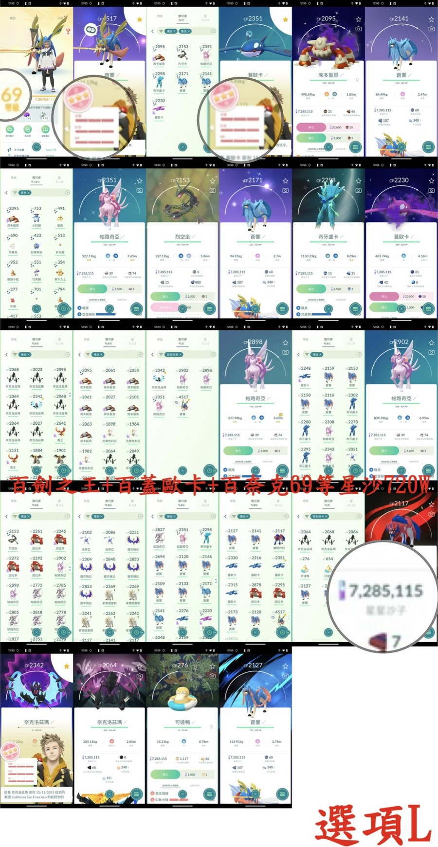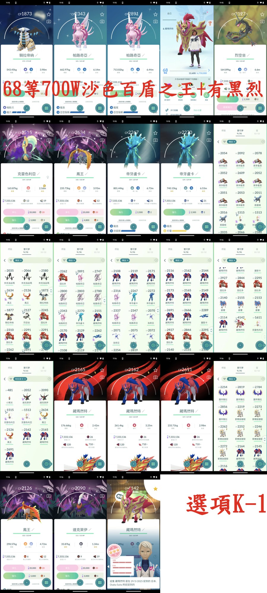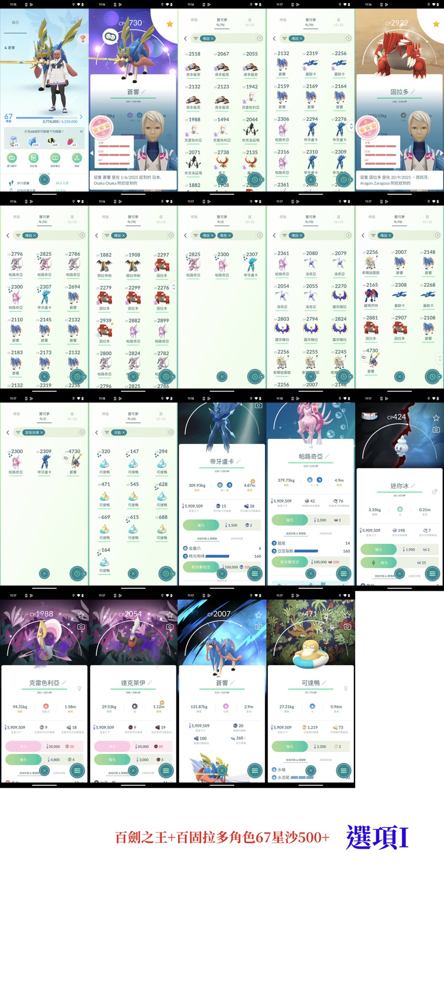 (選項L) 三百神 角色69等星沙720W 主打 滿百劍之王+滿百蓋歐卡(無能量)+滿百奈克洛茲瑪(身上有其它索爾迦雷歐&露奈雅拉*4組) 黑烈,色帕路奇亞有特招 其餘看圖 |