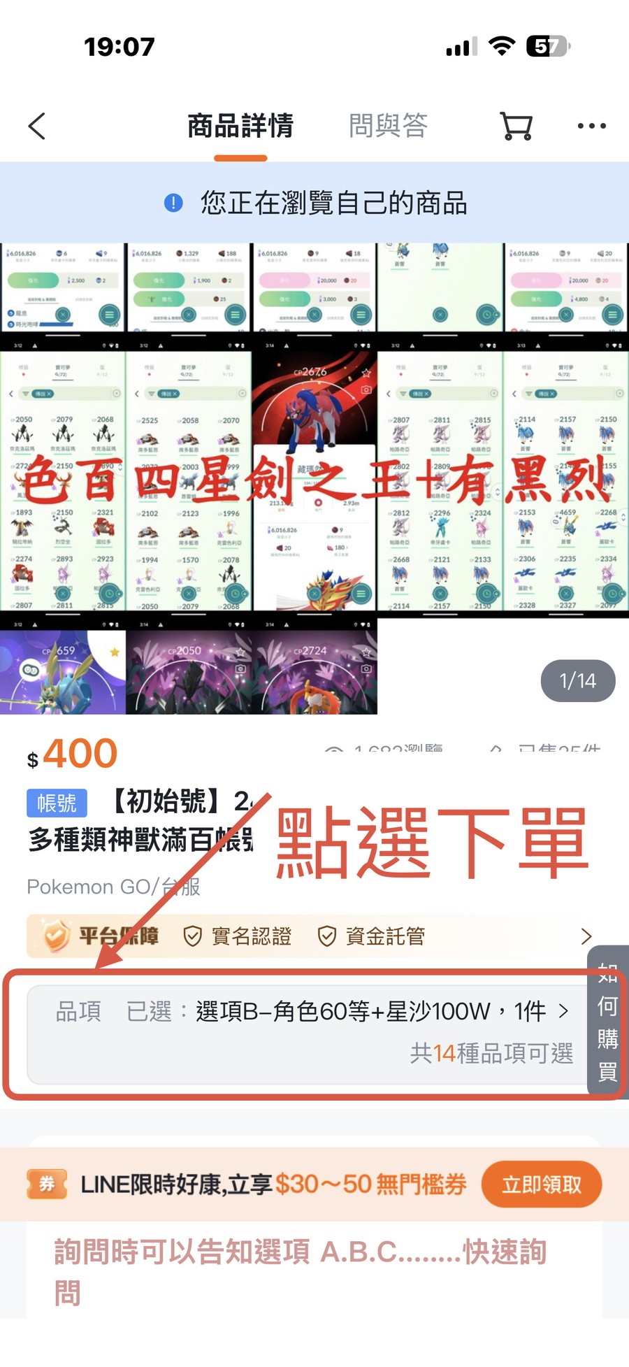 (選項E)!!!!!熱門項目 !!!!! (選項E-2)!!!!!熱門項目 !!!!! 自動發貨 等級64.65 星沙500W 實際內容依照圖片為主 內含 滿百四星盾之王+異色黑列空坐+異色特招雙龍 盾之王-*冒險技能 讓團體戰+極巨對戰 寶可夢防禦提升 ***5000沙+6顆小糖可以使用6分鐘