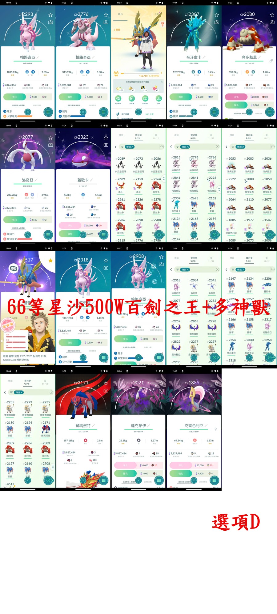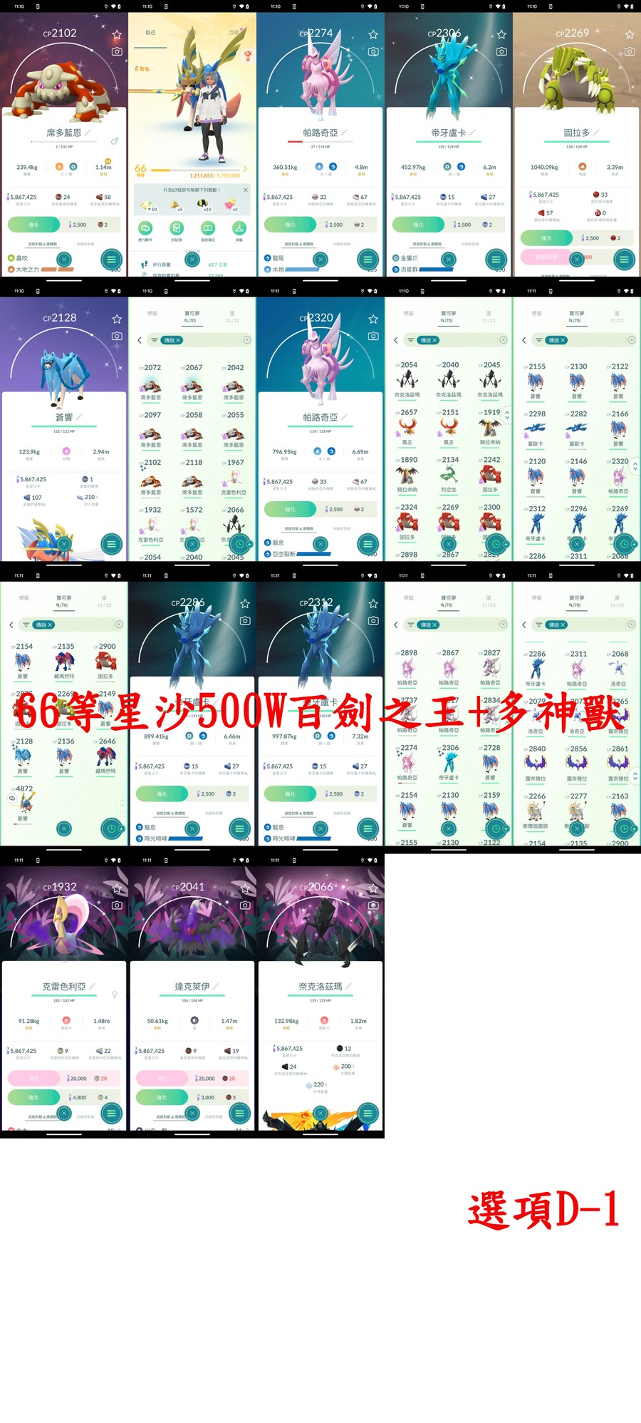 (選項D) !!!!!熱門項目 !!!!! (選項D-1)!!!!!熱門項目 !!!!! (選項D-2)!!!!!熱門項目 !!!!!售出 自動發貨 角色65~66等帳號 星沙500萬 照圖發貨 內含 滿百四星劍之王----多神獸 劍之王-*冒險技能 讓團體戰+極巨對戰 寶可夢攻擊力提升 ***5000沙+5顆小糖可使用6分鐘