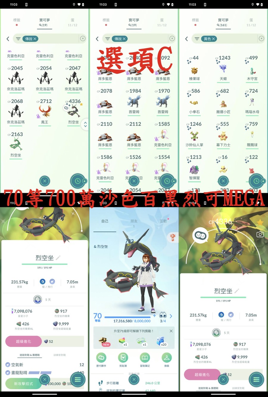 (選項C)色百神獸 角色70等星沙700萬起 主打色百烈空坐可MEGA身上糖果超多能量9999 其餘看圖 |