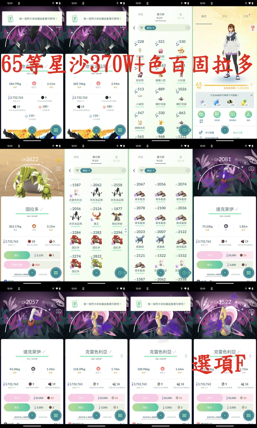 (選項F) 色百神 角色65等星沙370W左右 主打色百""固拉多"" 其餘看圖 |