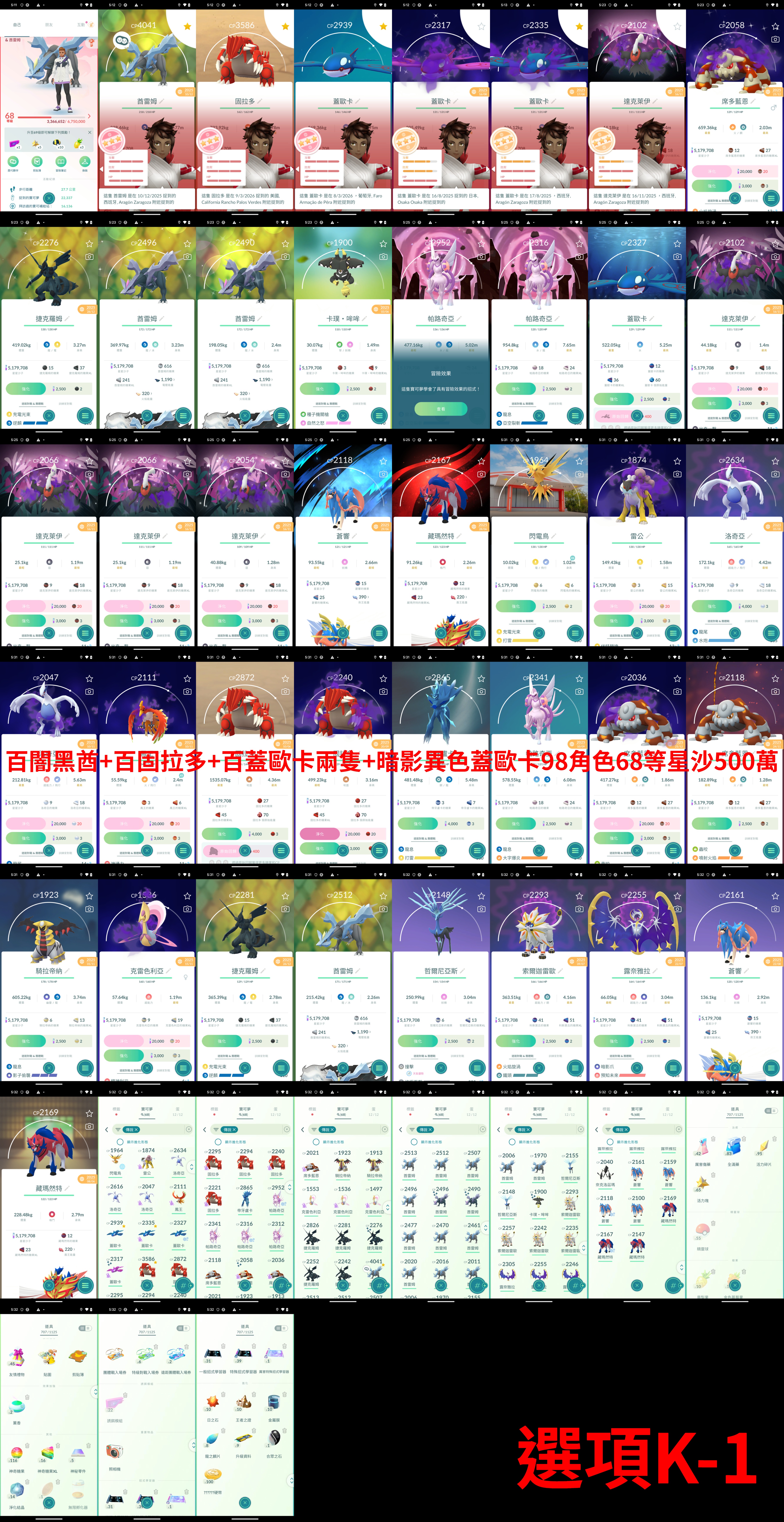 神獸194隻 奈克能量-太陽1000顆 酋雷姆 闇黑酋能量1000顆 大師球*2 細節看圖 有問題私訊