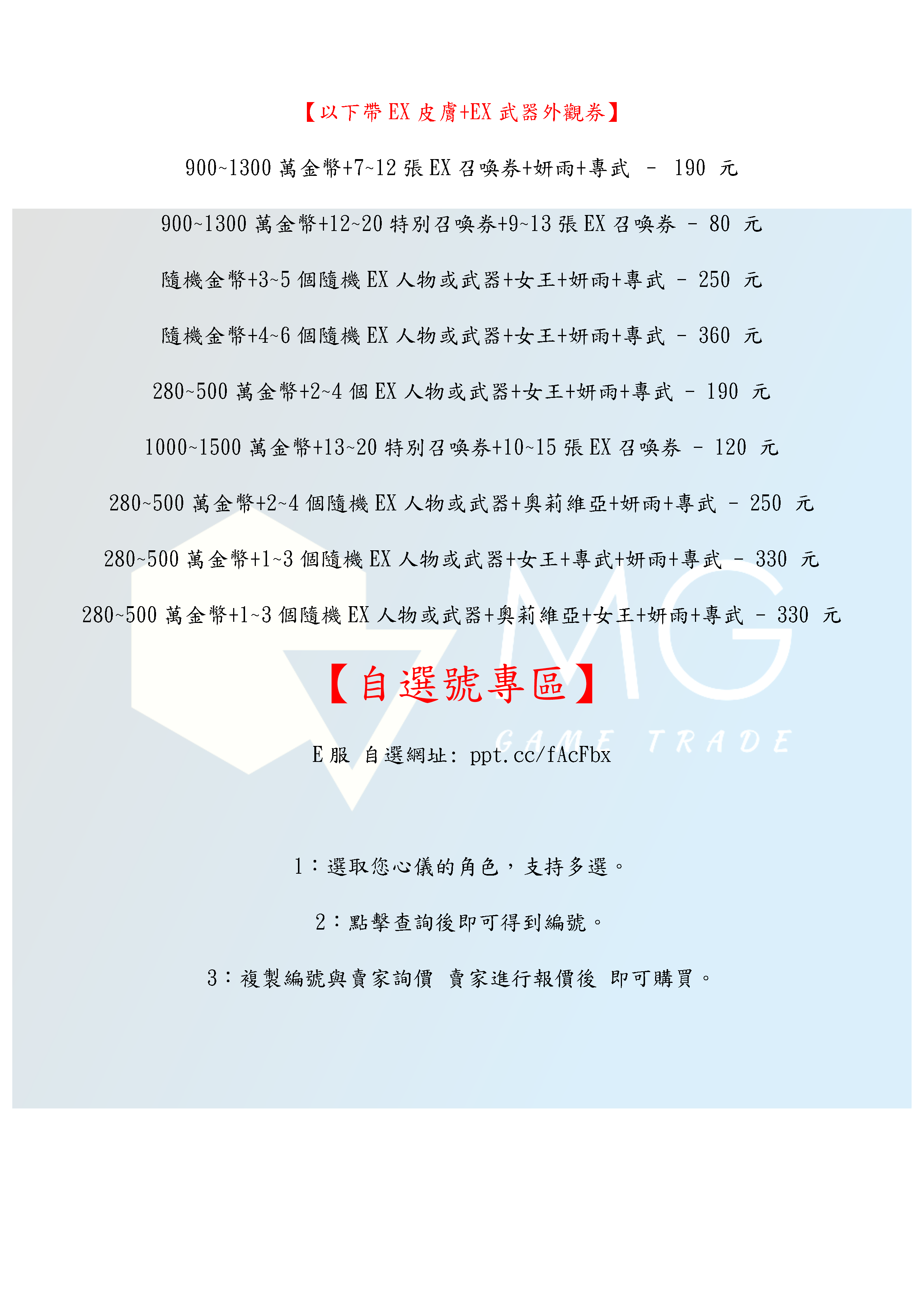 帳號 【初始號】 【MG數碼】 國際服 多石號 多抽號 初始號 自抽號 自選號 自選組合