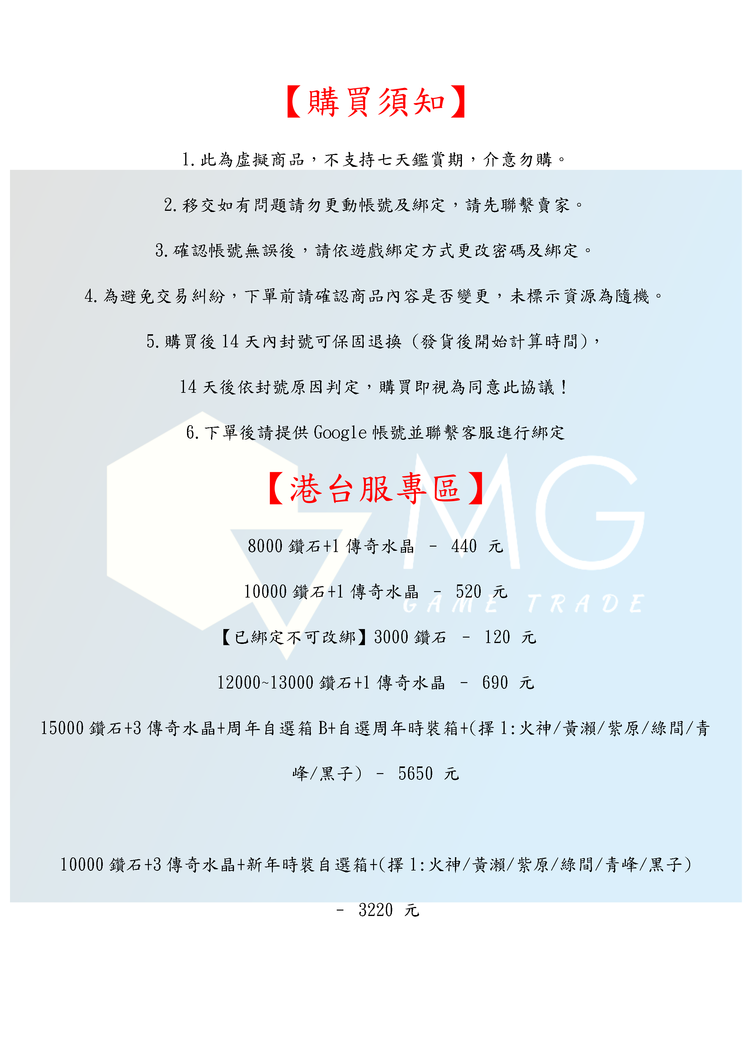 帳號 【初始號】 【MG數碼】 台服 日服 多石號 多鑽石號 初始號 自抽號 自選號