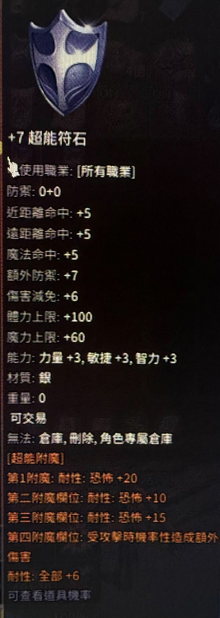 +7超能 恐怖耐性+45 全耐性+10