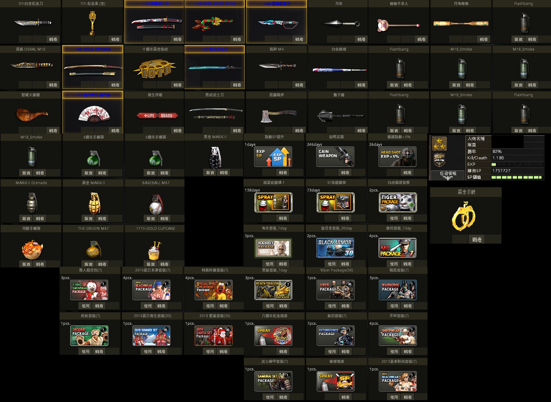 帳號 【無手機號碼】 百萬SP 15種SV 21把刀 百把槍枝 櫻花M4 多套裝