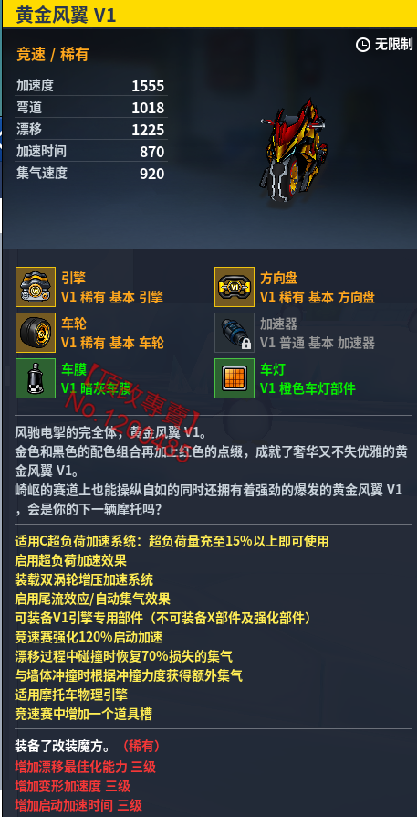內容:誅仙四劍訊 + 先驅者迅 + 5紅框V1(克洛諾斯V1+黑色甲蟲V+黃金遊俠V1+阿提密斯V1+紅旗V1) +黃金爆刃 V1 (車輛都頂改)