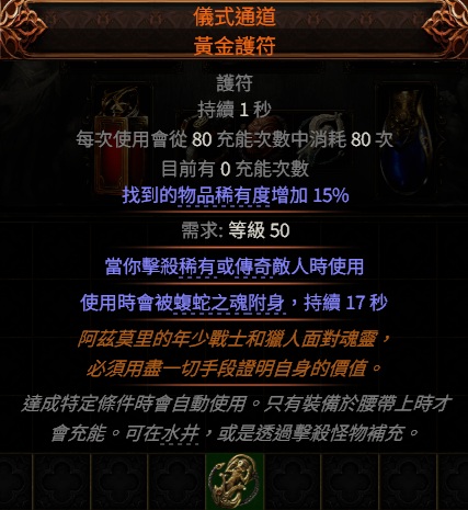 道具 【項鏈、護符、物品稀有度】 儀式通道.黃金護符(貓、公鹿、蝮蛇、熊、公牛、野豬、猿猴、狼之魂、貓頭鷹 )