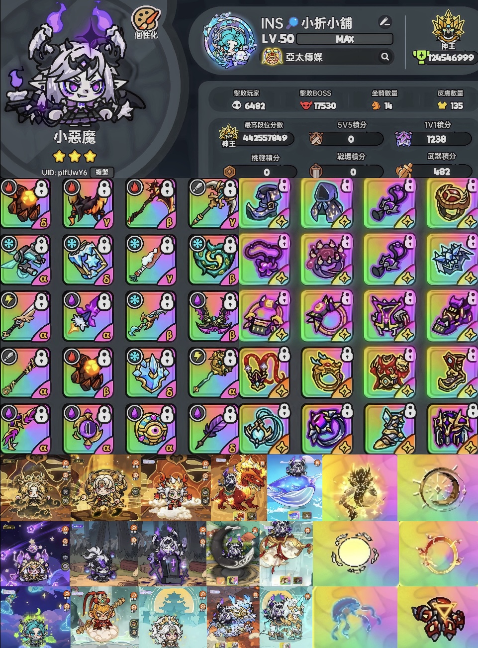 圖二帳號:金珠52顆、修復石8顆、火卡3張、雪卡2張、復活石500+以上、元素石各100+以上