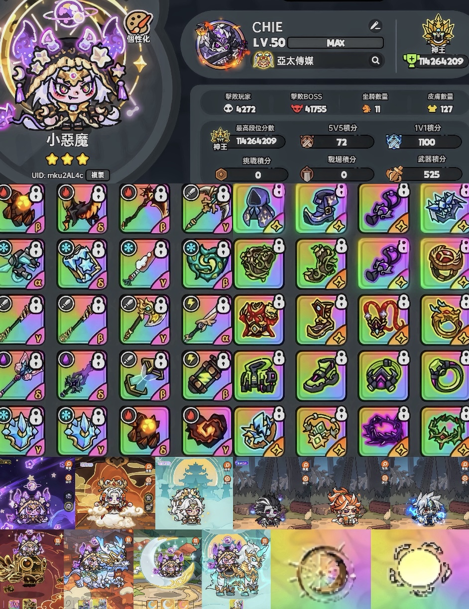 圖一帳號:入場播報、全英雄天賦、金珠45顆、修復石6顆、火卡2張、雪卡2張、復活石1000+以上、元素石各500+以上