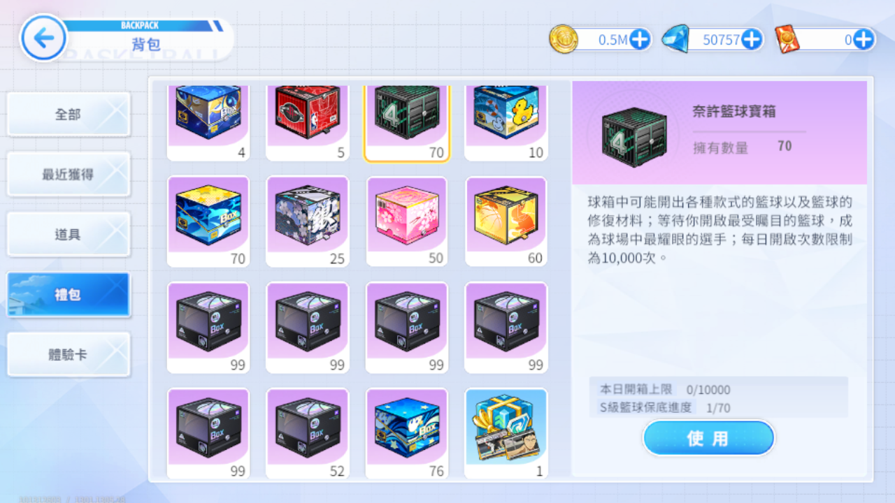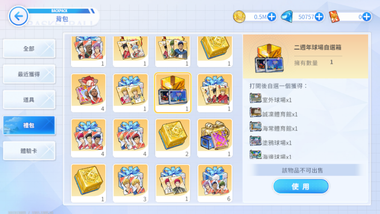 (八)NBA自選球場包、金塊球場、湖人球場、溜馬球場、夏日沙灘球場、誠凜體育館、勇士球場、聖誕節球場、二週年球場自選箱、公園球場(夜晚)、灰狼球場