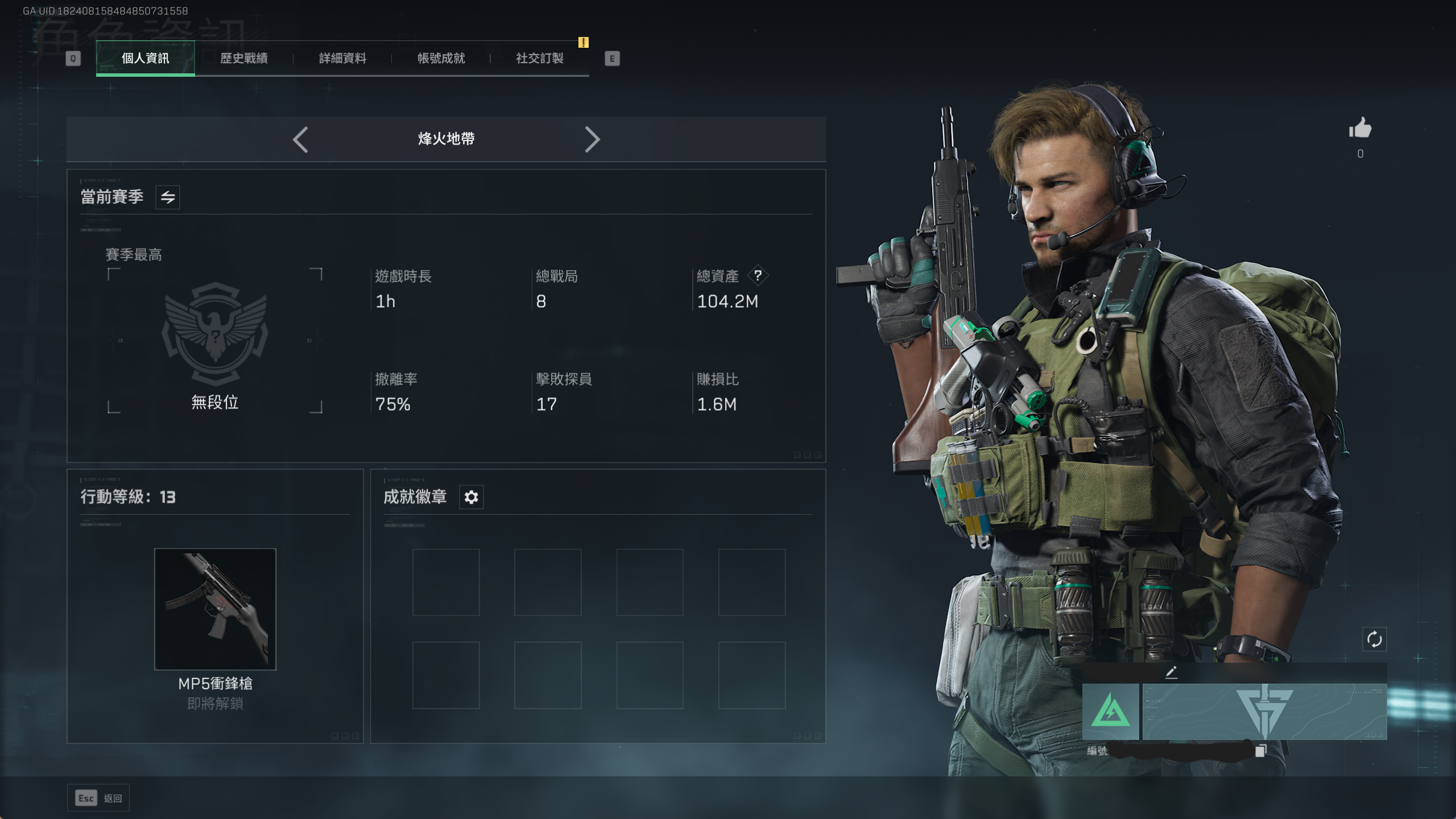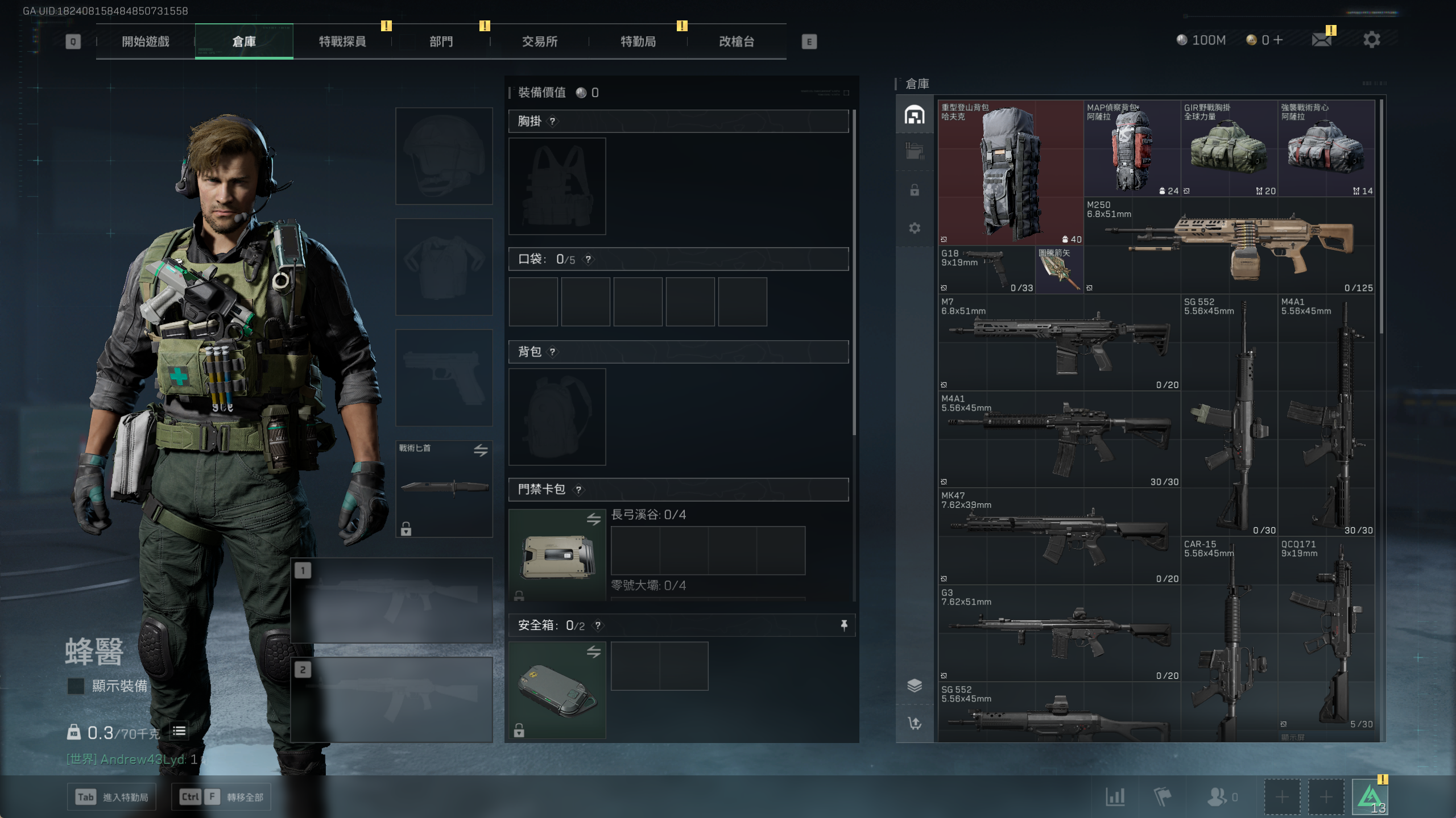 總資產(M)100、哈夫幣(萬)100