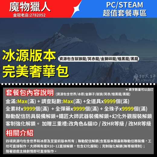🔥 此單僅為PC版 STEAM 魔物獵人冰原玩家購買。