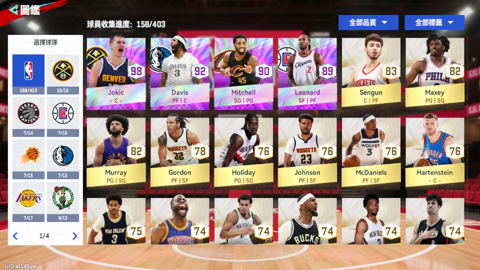 Davis(戴維斯)X2+Leonard(雷納德)+Mitchell(米契爾)+Jokic(約基奇)