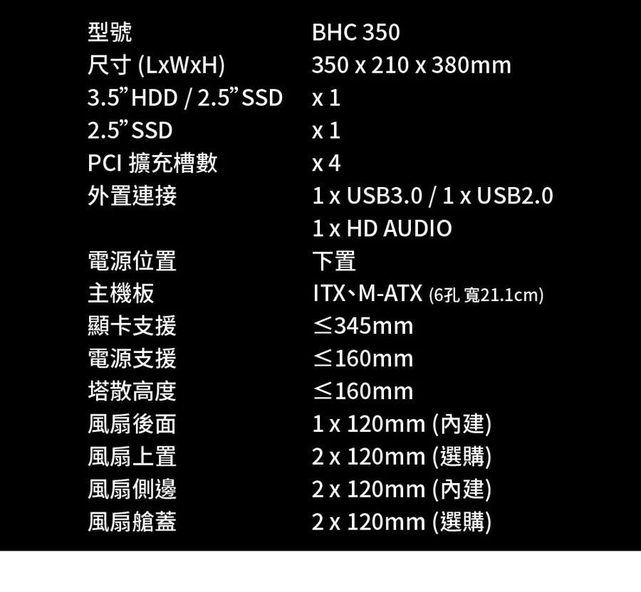 BHC 350W 白 (內含ARGB*1,反向風扇*2)