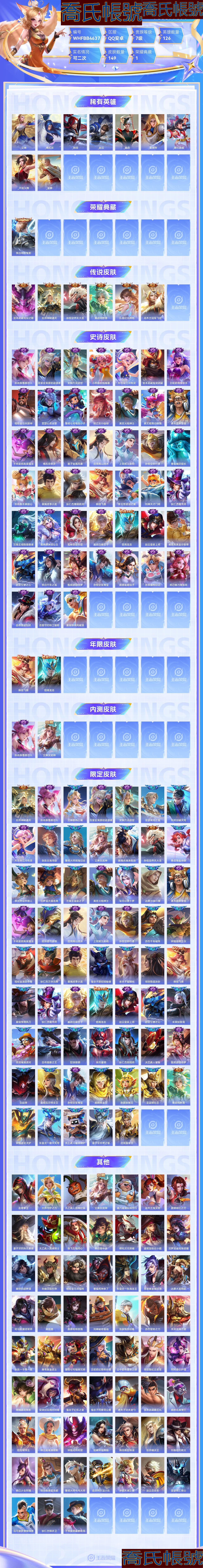 【OBWHFBB463742】 典藏1 傳說6 史詩45 限定61 英雄126 皮膚149 稀有英雄9 貴族7級 總場次8236 皮膚價值:117016 【榮耀典藏1】 李白鳴劍曳影 【傳說皮膚6】 宮本武藏地獄之眼 后羿神樹通天 孫悟空齊天大聖 桑啟鳴野蒿 雲纓幻光神槍 花木蘭冠軍飛將 【史詩皮膚45】 孫尚香薔薇戀人 百里玄策原初追逐者 女媧萬靈啟世 小喬繽紛獨角獸 阿古朵江河有靈 宮本武藏鬼劍武藏 王昭君偶像歌手 程咬金功夫廚神 亞瑟心靈戰警 魯班七號電玩小子 妲己女僕咖啡 黃忠火炮紳士 蔡文姬舞動綠茵 典韋藍色畫面警告 干將莫邪真愛魔法 橘右京修羅 墨子金屬風暴 莊周高山流水 上官婉兒梁祝 孫悟空孫行者 曹操幽靈船長 孫尚香水果甜心 裴擒虎李小龍 狄仁傑鷹眼統帥 韓信飛衡 李元芳逐浪之夏 劉禪天才門將 狄仁傑魔術師 蘭陵王暗隱獵獸者 雅典娜冰冠公主 貂蟬聖誕戀歌 嬴政白晝王子 鎧青龍志 趙雲皇家上將 諸葛亮黃金分割率 趙雲引擎之心 李白千年之狐 甄姬遊園驚夢 孫悟空至尊寶 露娜紫霞仙子 孫策貓狗日記 妲己魅力維加斯 呂布聖誕狂歡 百里守約特工魅影 夏侯惇乘風破浪 【年限皮膚2】 韓信飛衡 鎧青龍志 【內測皮膚2】 孫尚香薔薇戀人 艾琳女武神 【限定皮膚61】 后羿神樹通天 孫尚香薔薇戀人 艾琳鶴鳴心箋 百里玄策原初追逐者 女媧萬靈啟世 亞瑟榮光之誓 劉邦劍破天穹 阿古朵江河有靈 張良古海尋蹤 魯班大師探海日誌 艾琳女武神 裴擒虎擒濤扼浪 孫悟空齊天大聖 桑啟海鹽詩旅 李元芳雲中旅人 沈夢溪大漠名商 蘭陵王金庭之子 黃忠火炮紳士 羋月幻夜卜夢 達摩沙漠行僧 典韋藍色畫面警告 干將莫邪真愛魔法 后羿聖弓遊俠 莊周高山流水 上官婉兒梁祝 孫悟空孫行者 蘇烈千軍破陣 鍾馗驅儺正儀 程咬金演武奪籌 狄仁傑萬華元夜 裴擒虎李小龍 鬼谷子原初探秘者 老夫子醍醐杖 明世隱疑決卦 韓信飛衡 夏侯惇朔風刀 狄仁傑魔術師 嬴政白晝王子 鎧青龍志 趙雲皇家上將 趙雲引擎之心 米萊狄御霄 項羽海灘派對 呂布獵獸之王 狂鐵御獅 羋月重明 狄仁傑陰陽師 太乙真人饕餮 甄姬遊園驚夢 白起猙 虞姬凱爾特女王 孫悟空至尊寶 扁鵲鍊金王 孫臏妖精王 亞瑟獅心王 桑啟鳴野蒿 鍾馗虛靈犬護 東皇太一噬滅天穹 太乙真人謐流熔爐 姜子牙天穹之誓 莊周蜃樓王 【其他59】 達摩拳王 大喬守護之力 太乙真人勁辣紅鍋 艾琳女武神 豬八戒潮玩探月行 花木蘭兔女郎 露娜緋紅之刃 姜子牙熾熱元素使 太乙真人圓桌騎士 張飛五福同心 桑啟畫中遊 哪吒次元突破 虞姬加勒比小姐 沈夢溪鯊炮海盜貓 蒙犽歸虛夢演 劉備漢昭烈帝 程咬金無雙福將 曹操死神來了 東皇太一東海龍王 高漸離金屬狂潮 達摩大發明家 司馬懿魘語軍師 瀾孤獵 露娜哥特玫瑰 劉禪秘密基地 張良繽紛繪卷 蘇烈堅韌之力 關羽龍騰萬里 張良一千零一夜 典韋黃金武士 魯班七號福祿兄弟 王昭君幻想奇妙夜 雲中君荷魯斯之眼 明世隱虹雲星官 阿軻愛心護理 嫦娥露花倒影 安琪拉玩偶對對碰 鬼谷子幻樂之宴 鬼谷子阿摩司公爵 老夫子功夫老勺 宮本武藏霸王丸 扁鵲化身博士 鎧龍域領主 鍾無豔海灘麗影 鍾馗地府判官 貂蟬異域舞娘 韓信教廷特使 后羿精靈王 劉備紐約教父 妲己少女阿狸 明世隱景韶洛都 魯班大師乓乓大師 后羿阿爾法小隊 孫臏天使之翼 趙雲忍炎影 亞瑟死亡騎士 馬可波羅激情綠茵 狄仁傑錦衣衛 干將莫邪霧都夜雨 【稀有英雄9】 _艾琳 _橘右京 _韓信 _趙雲 _嬴政 _夏洛特 _娜可露露 _不知火舞 _金蟬【手Q121區】【絕世王者】【國標擁有情況為賣家自主勾選,詳情以真實驗號為準】