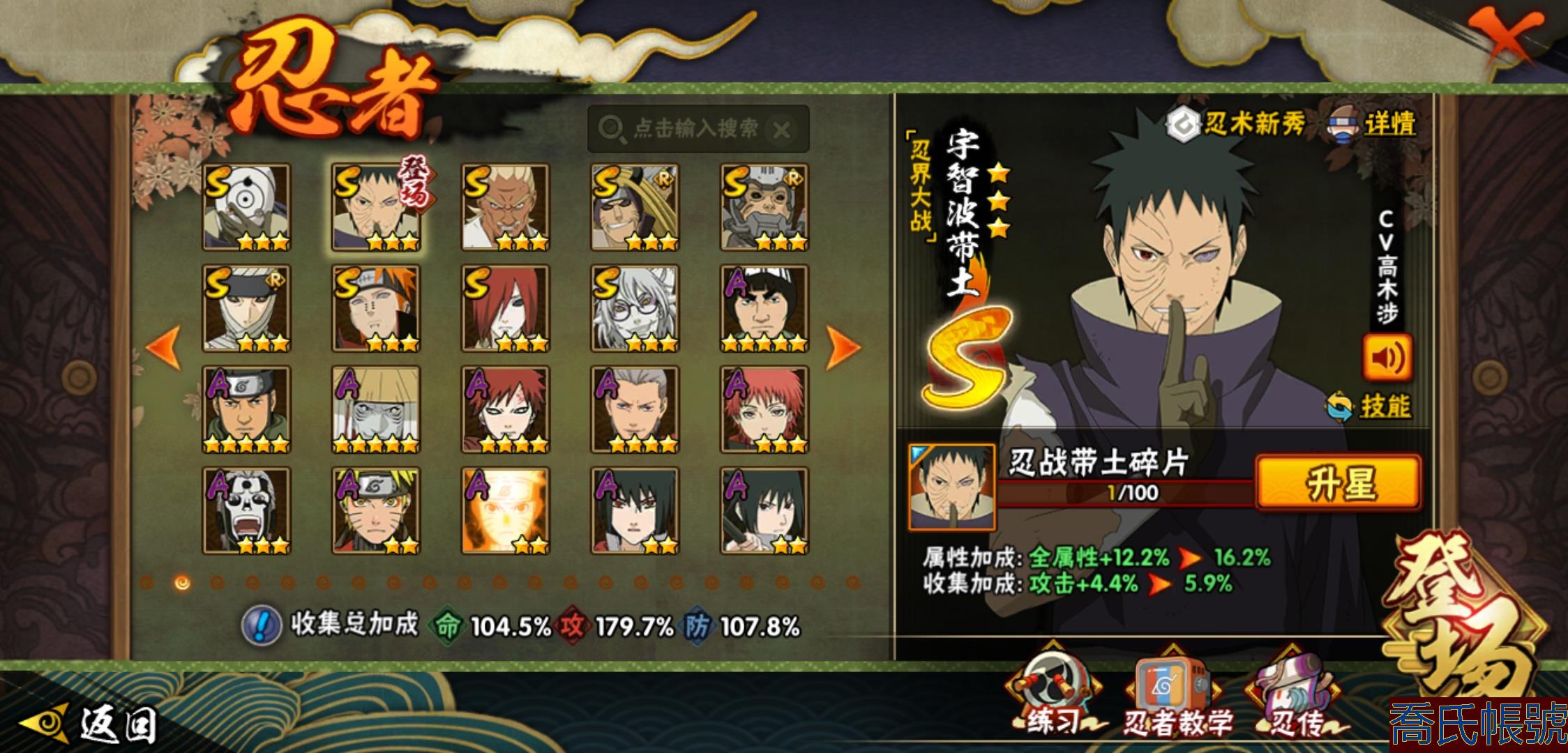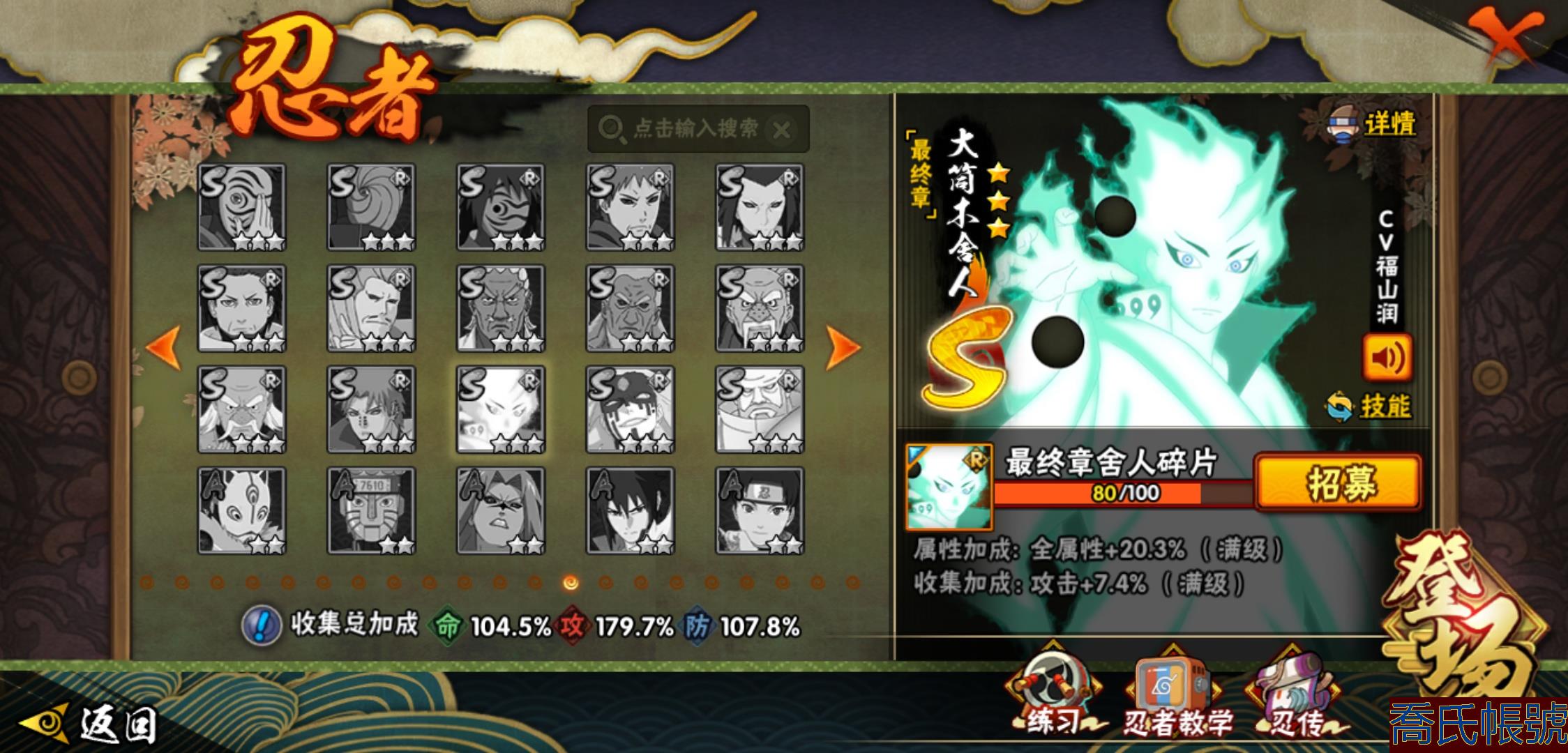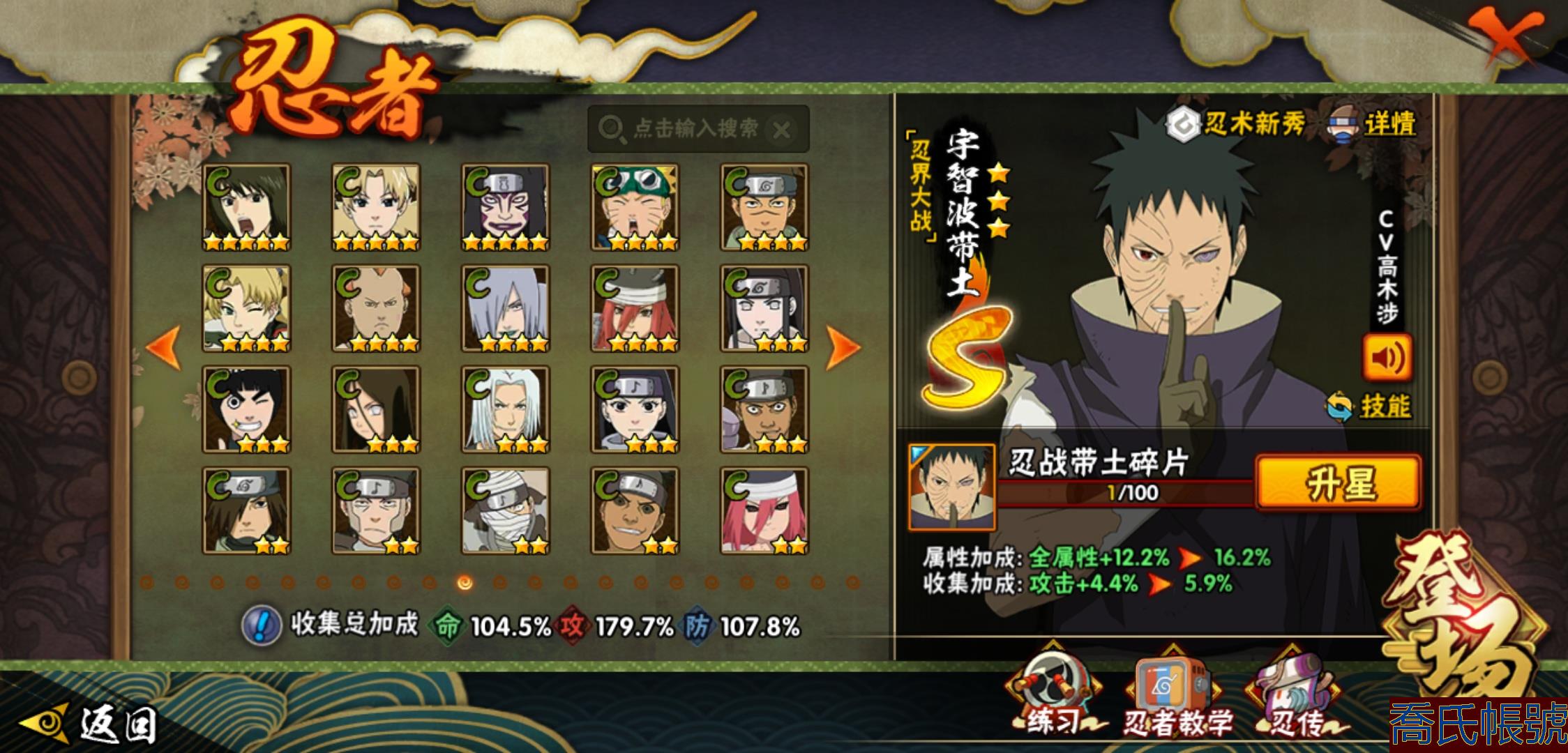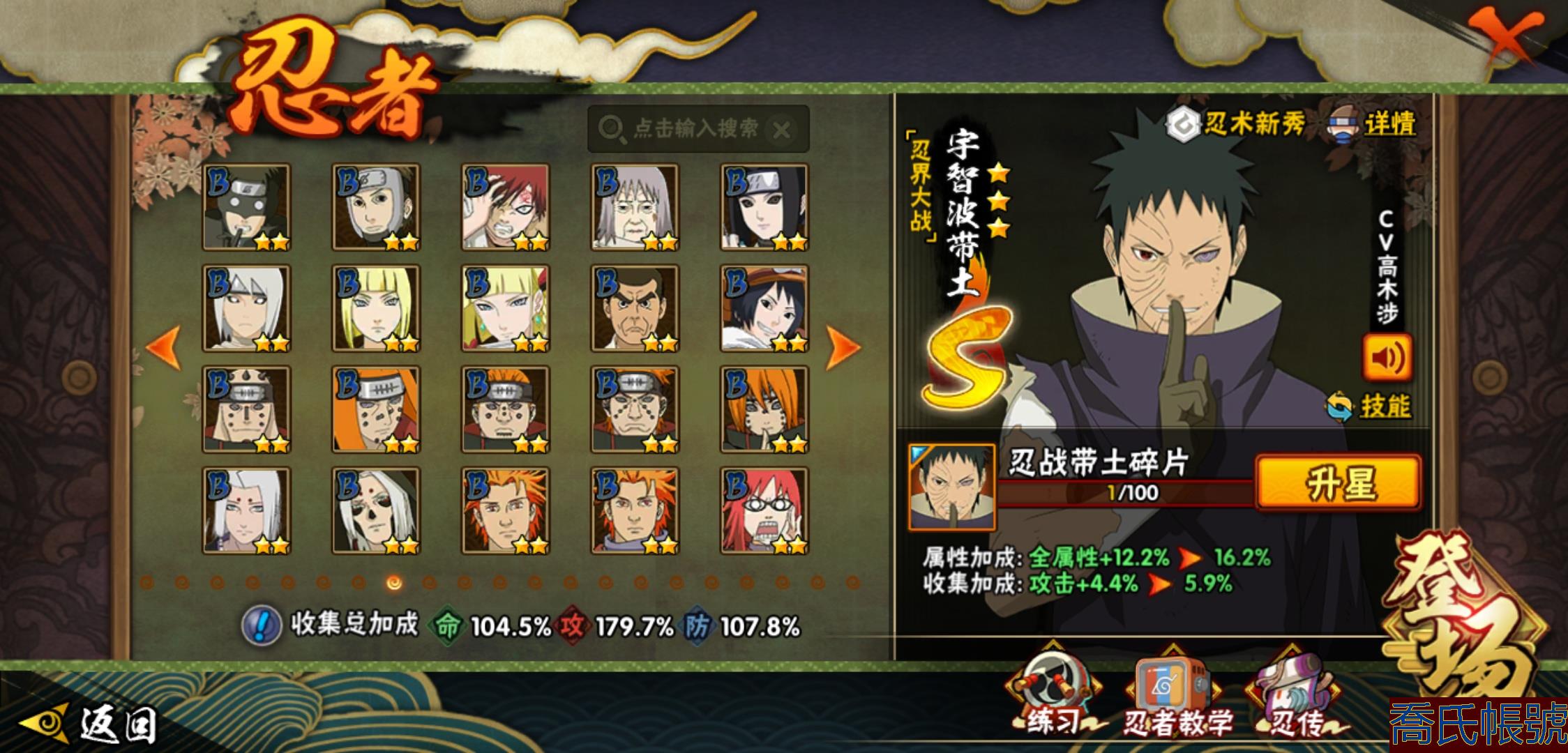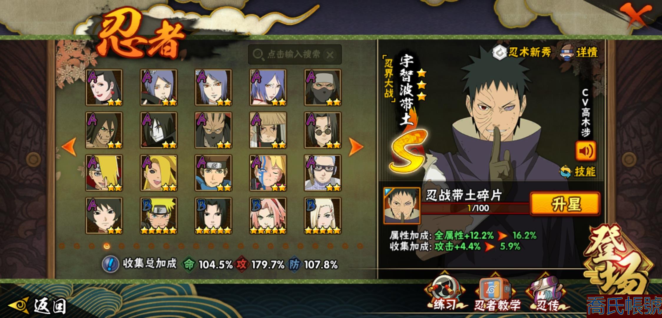 【OBHLLHW829042】戰鬥力:1210W+;段位:中忍2階;本服排名:314;戰區排名:未上榜;VIP11級;S忍29個;A忍47個;通靈獸20個;S忍:永恆萬花筒宇智波佐助,忍界大戰春野櫻,須佐能乎旗木卡卡西,自來也,舞之豪傑自來也,傳說中的三忍自來也,大蛇丸,百豪綱手,綱手,波風水門,穢土轉生波風水門,猿飛日斬,穢土轉生猿飛日斬,穢土轉生千手扉間,千手柱間,宇智波斑,穢土轉生宇智波斑,穢土轉生解宇智波斑,須佐能乎宇智波鼬,穢土轉生宇智波鼬,白面具宇智波斑,忍界大戰宇智波帶土,忍界大戰艾,穢土轉生金角銀角,穢土轉生半藏,二代目土影無,天道佩恩,穢土轉生長門,仙人模式藥師兜;A忍:邁特凱(5星),猿飛阿斯瑪(5星),幹柿鬼鮫(5星),疾風傳我愛羅(4星),飛段(4星),蠍(3星),死司憑血飛段(3星),仙人模式漩渦鳴人,九尾查克拉漩渦鳴人,萬花筒寫輪眼宇智波佐助,須佐能乎宇智波佐助,宇智波泉奈,百豪春野櫻,忍界大戰秋道丁次,忍界大戰日向寧次,忍界大戰李洛克,最終章日向雛田,幻之真容旗木卡卡西,萬花筒寫輪眼旗木卡卡西,宇智波止水,新春限定波風水門,青年波風水門,忍界大戰我愛羅,近松十人衛千代,俠隱江湖照美冥,五代目水影照美冥,漂泊武士桃地再不斬,穢土轉生桃地再不斬,忍界大戰奇拉比,奇拉比,半蛇斗篷藥師兜,不緣,小南,夏日泳裝小南,漂泊浪客小南,曉創生角都,穢土轉生角都,曉大蛇丸,緋流琥蠍,宇智波鼬,新春限定宇智波鼬,迪達拉,穢土轉生迪達拉,猿飛木葉丸,桃式顯現漩渦博人,六代目水影長十郎,四代目土影黑土;通靈獸:忍犬,藍蛇,蛤蟆吉,忍龜,鐮鼬,猿魔,山椒魚,蜃,蛤蟆仙人,鮫鯊,蛤蟆健,烏鴉,蛞蝓,蛤蟆龍,砂之守鶴,蛤蟆廣,熊貓,夢貘,辛牙;時裝:百戰佩恩天道,百戰宇智波鼬須佐能乎,百戰波風水門,蜀面豪傑舞之豪傑自來也,太極靈韻日向花火武當宗師,血霧怪人幹柿鬼鮫,熊貓少女天天峨眉宗師,火之意志綱手百豪,編織虛實宇智波鼬,可愛睡衣漩渦鳴人,緋櫻綻放春野櫻百豪;【1038】