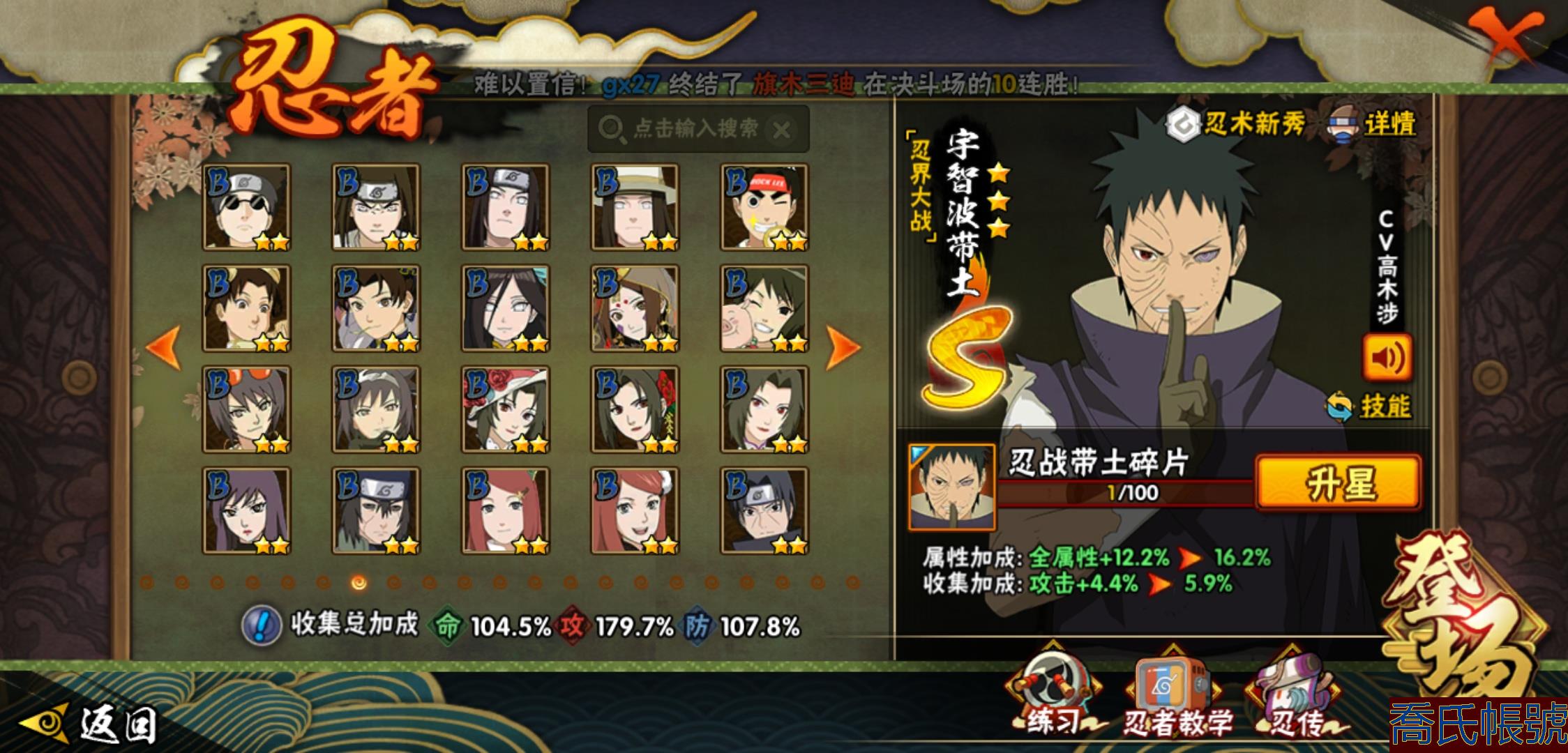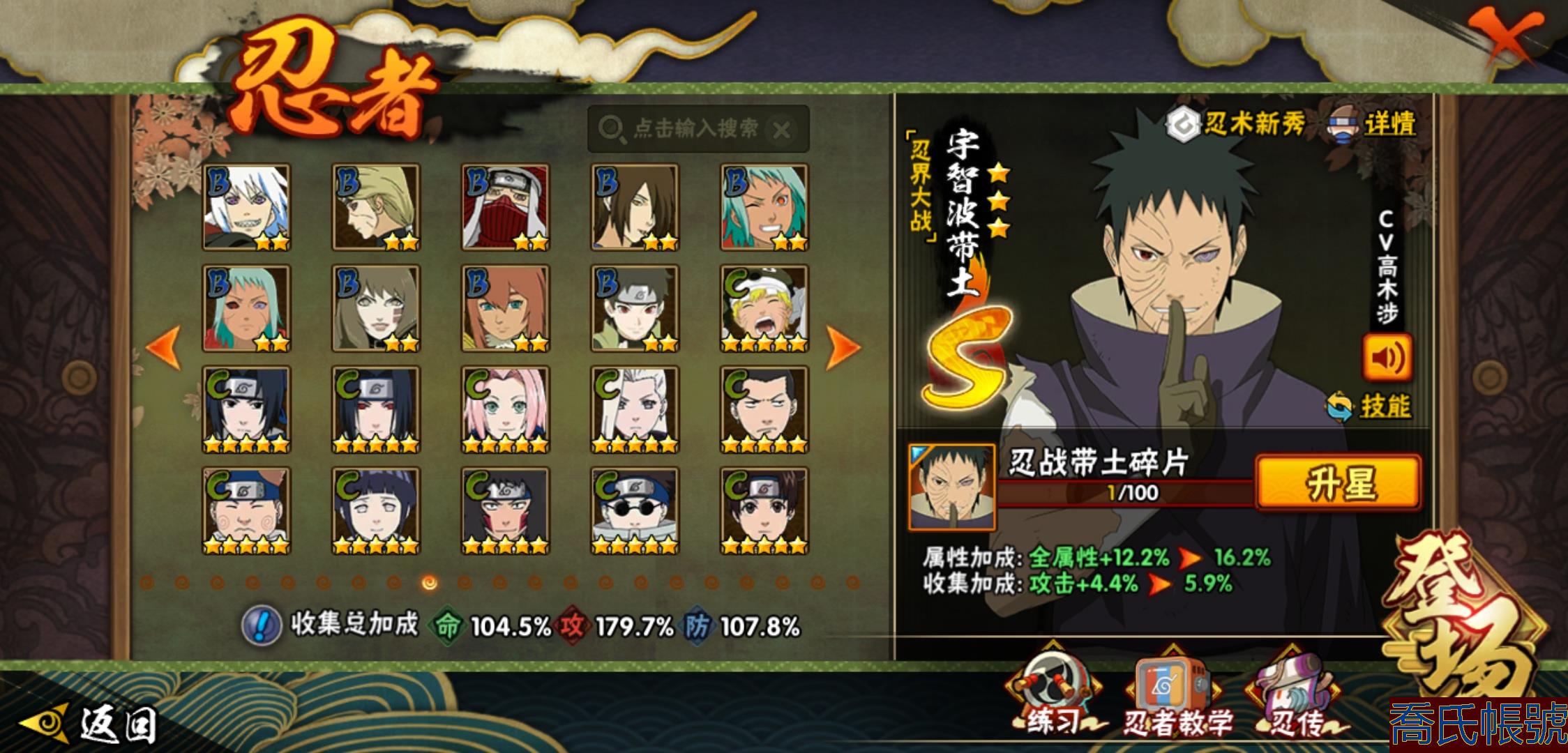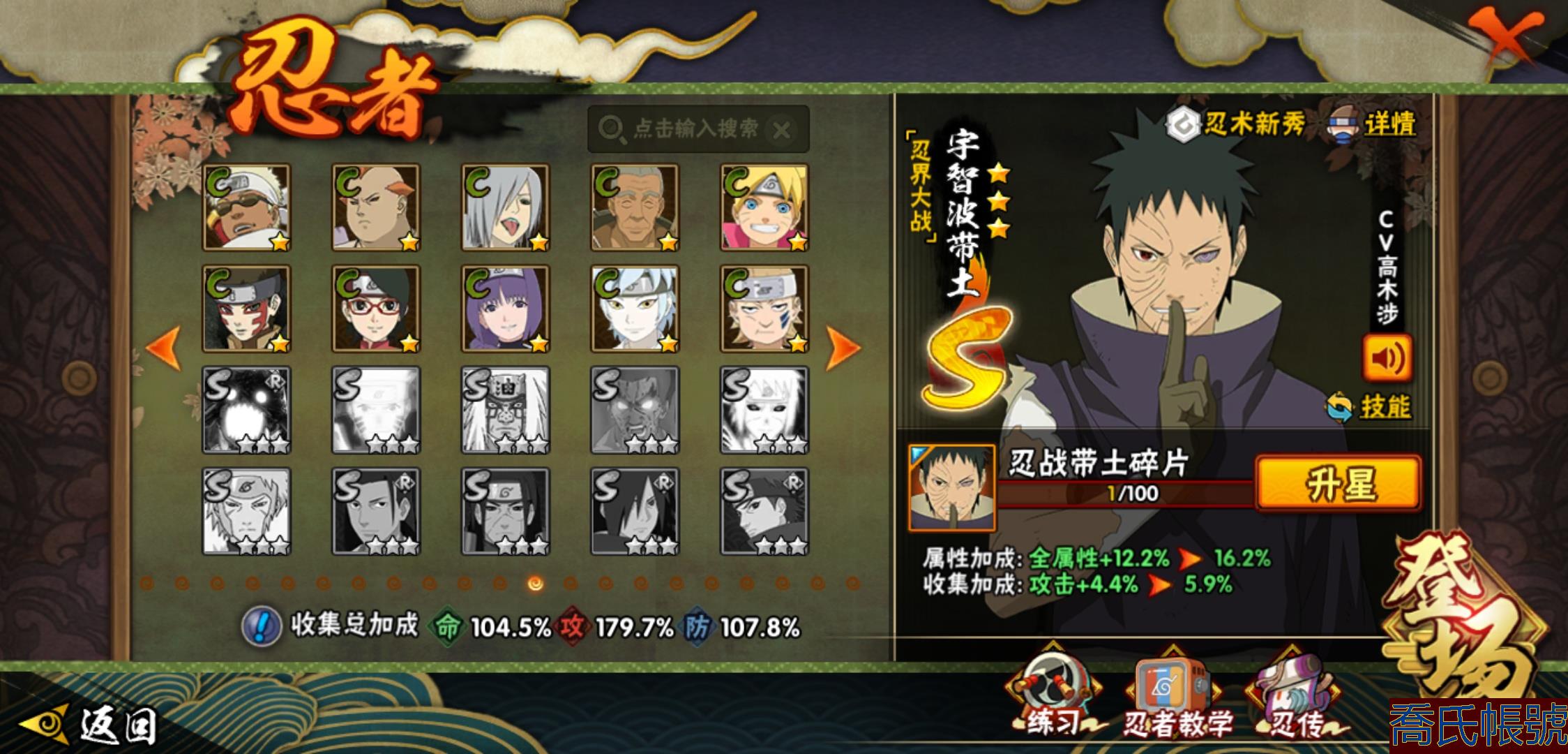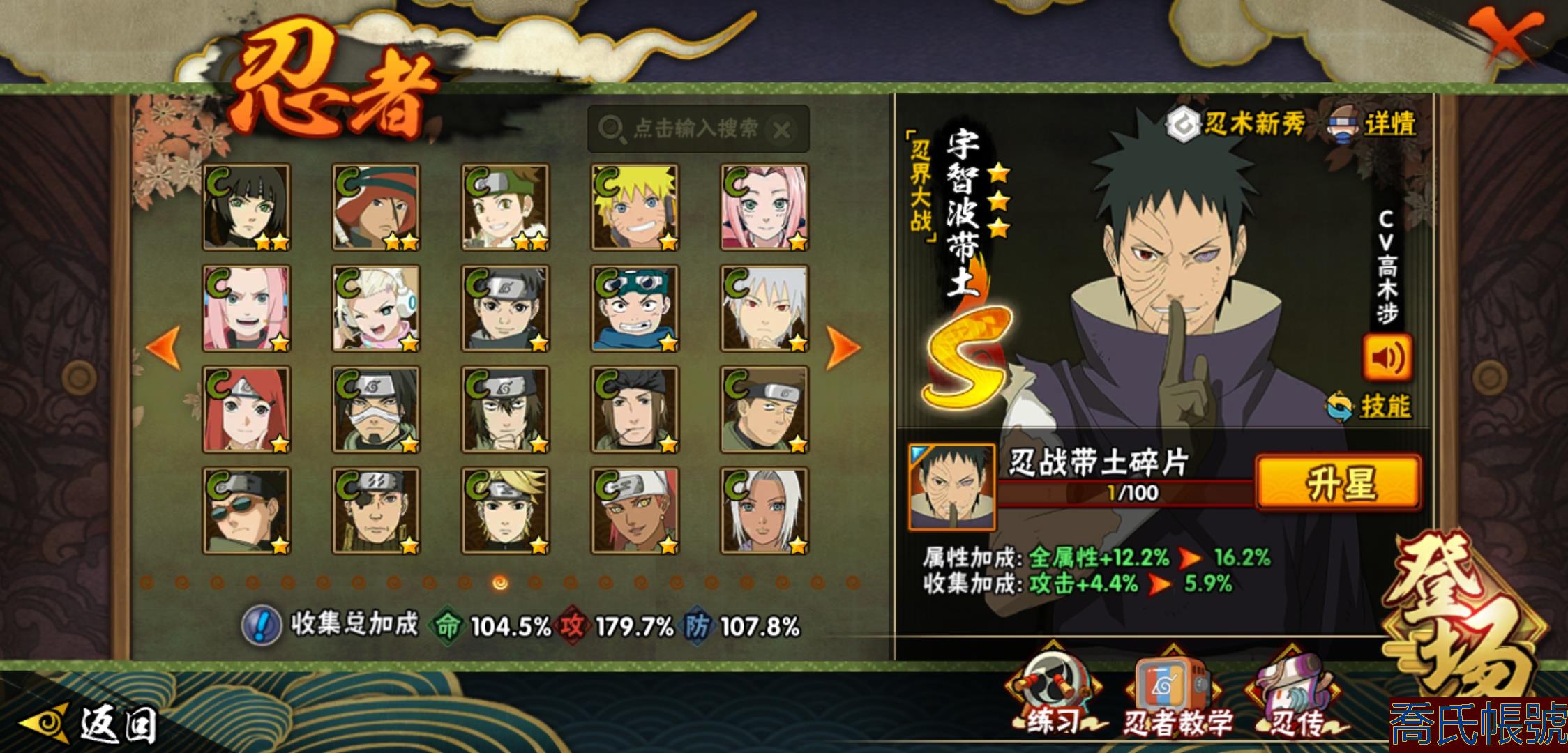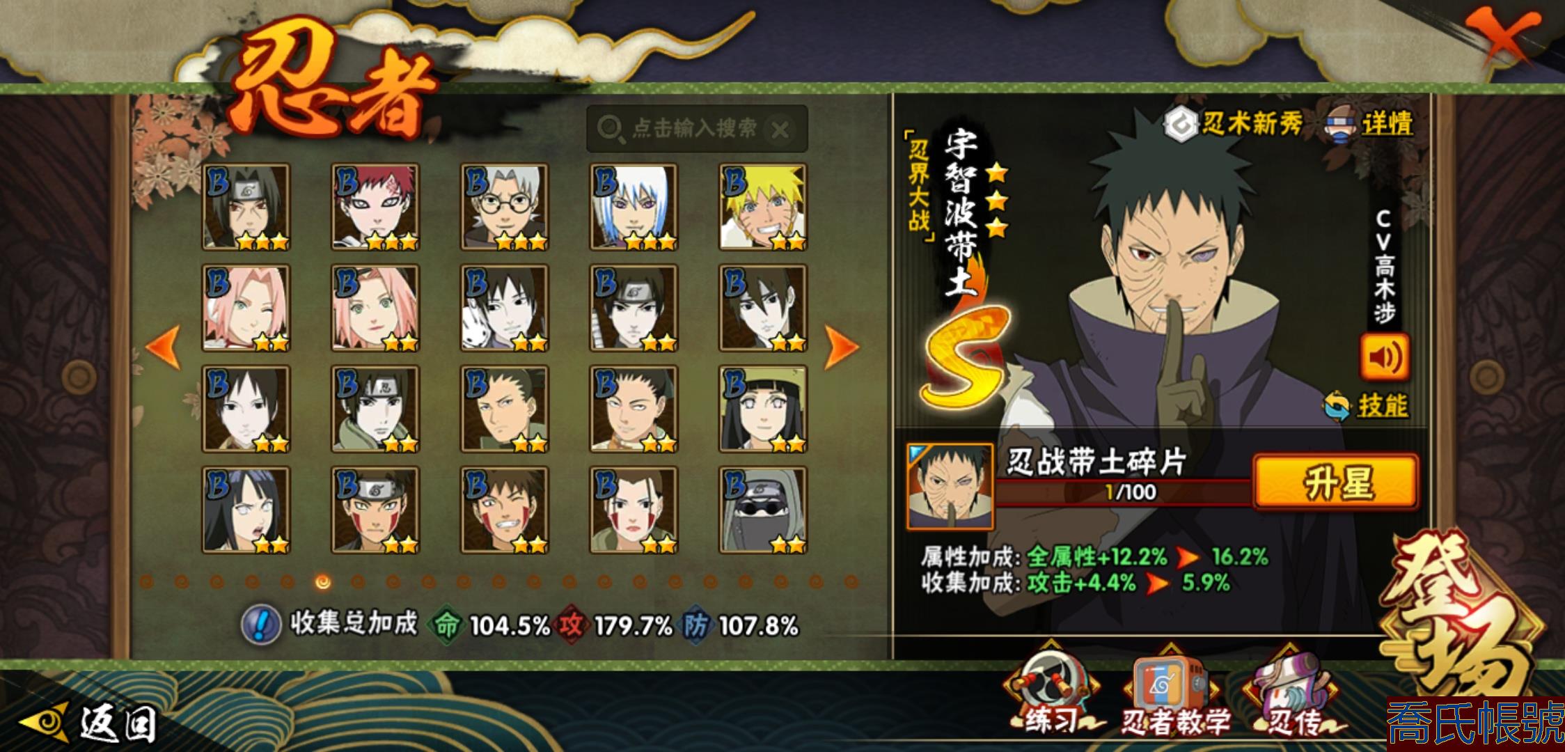 【OBHLLHW829042】戰鬥力:1210W+;段位:中忍2階;本服排名:314;戰區排名:未上榜;VIP11級;S忍29個;A忍47個;通靈獸20個;S忍:永恆萬花筒宇智波佐助,忍界大戰春野櫻,須佐能乎旗木卡卡西,自來也,舞之豪傑自來也,傳說中的三忍自來也,大蛇丸,百豪綱手,綱手,波風水門,穢土轉生波風水門,猿飛日斬,穢土轉生猿飛日斬,穢土轉生千手扉間,千手柱間,宇智波斑,穢土轉生宇智波斑,穢土轉生解宇智波斑,須佐能乎宇智波鼬,穢土轉生宇智波鼬,白面具宇智波斑,忍界大戰宇智波帶土,忍界大戰艾,穢土轉生金角銀角,穢土轉生半藏,二代目土影無,天道佩恩,穢土轉生長門,仙人模式藥師兜;A忍:邁特凱(5星),猿飛阿斯瑪(5星),幹柿鬼鮫(5星),疾風傳我愛羅(4星),飛段(4星),蠍(3星),死司憑血飛段(3星),仙人模式漩渦鳴人,九尾查克拉漩渦鳴人,萬花筒寫輪眼宇智波佐助,須佐能乎宇智波佐助,宇智波泉奈,百豪春野櫻,忍界大戰秋道丁次,忍界大戰日向寧次,忍界大戰李洛克,最終章日向雛田,幻之真容旗木卡卡西,萬花筒寫輪眼旗木卡卡西,宇智波止水,新春限定波風水門,青年波風水門,忍界大戰我愛羅,近松十人衛千代,俠隱江湖照美冥,五代目水影照美冥,漂泊武士桃地再不斬,穢土轉生桃地再不斬,忍界大戰奇拉比,奇拉比,半蛇斗篷藥師兜,不緣,小南,夏日泳裝小南,漂泊浪客小南,曉創生角都,穢土轉生角都,曉大蛇丸,緋流琥蠍,宇智波鼬,新春限定宇智波鼬,迪達拉,穢土轉生迪達拉,猿飛木葉丸,桃式顯現漩渦博人,六代目水影長十郎,四代目土影黑土;通靈獸:忍犬,藍蛇,蛤蟆吉,忍龜,鐮鼬,猿魔,山椒魚,蜃,蛤蟆仙人,鮫鯊,蛤蟆健,烏鴉,蛞蝓,蛤蟆龍,砂之守鶴,蛤蟆廣,熊貓,夢貘,辛牙;時裝:百戰佩恩天道,百戰宇智波鼬須佐能乎,百戰波風水門,蜀面豪傑舞之豪傑自來也,太極靈韻日向花火武當宗師,血霧怪人幹柿鬼鮫,熊貓少女天天峨眉宗師,火之意志綱手百豪,編織虛實宇智波鼬,可愛睡衣漩渦鳴人,緋櫻綻放春野櫻百豪;【1038】