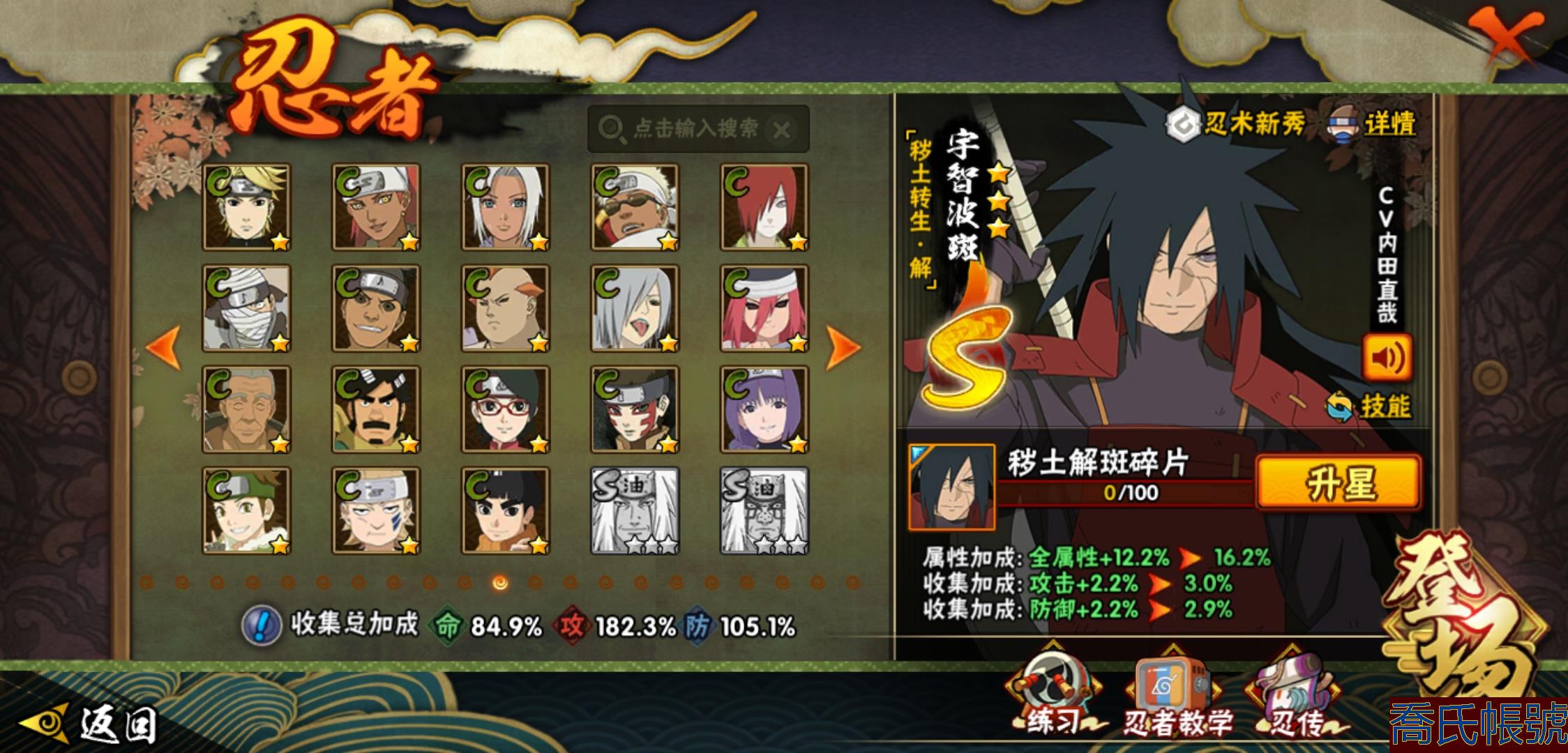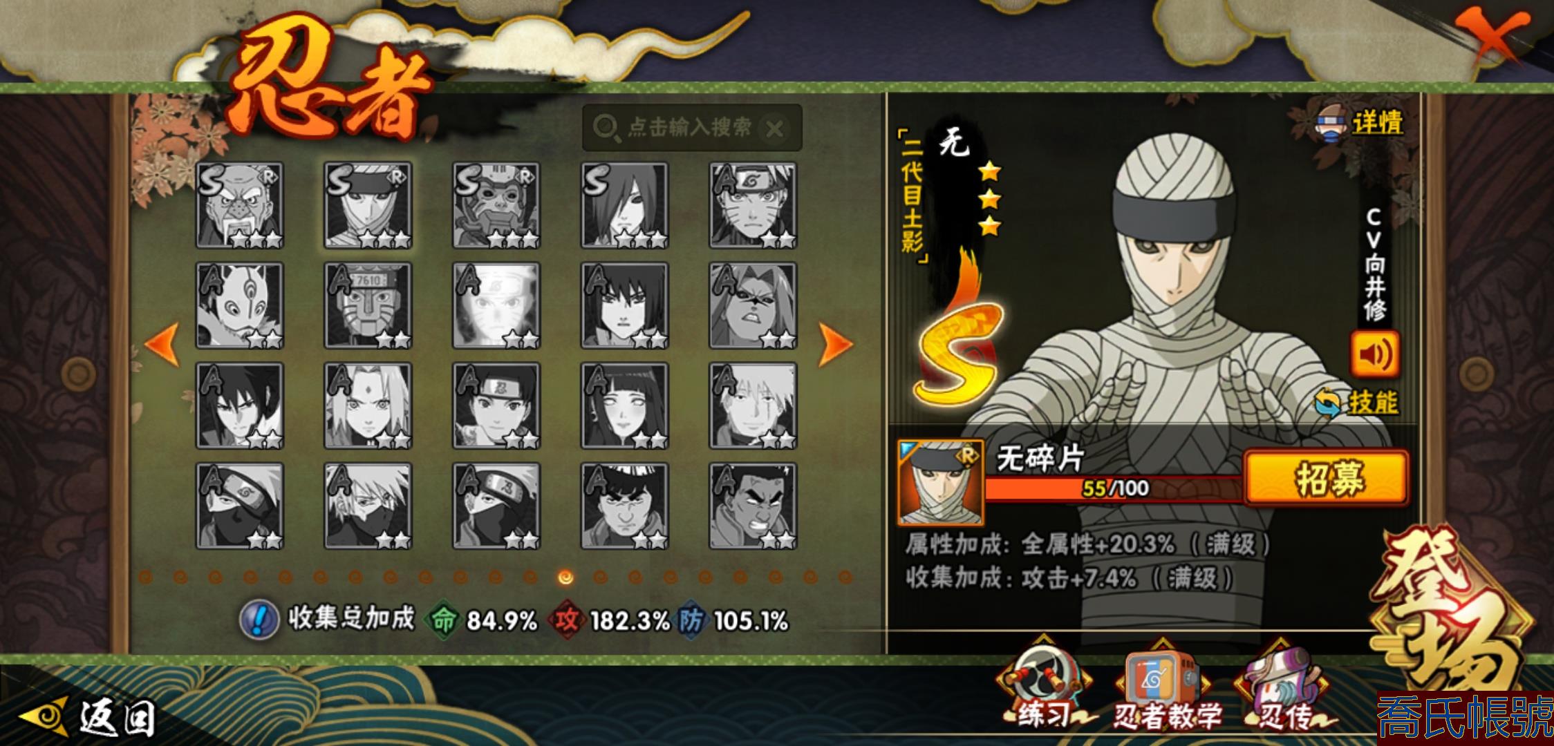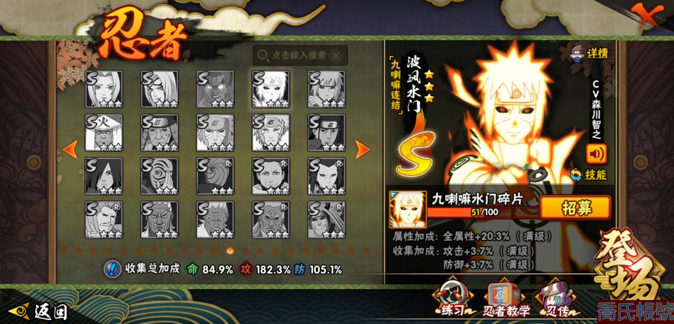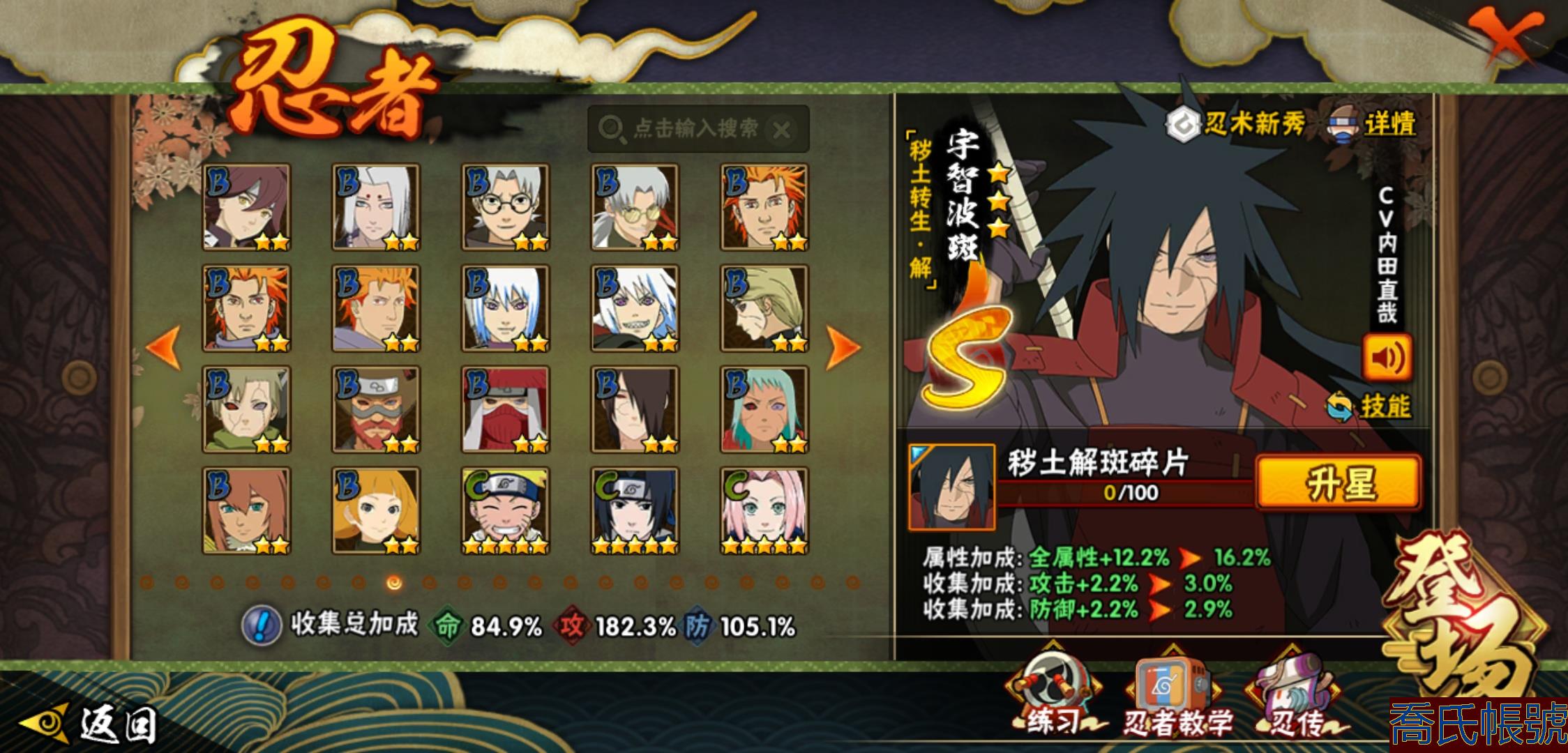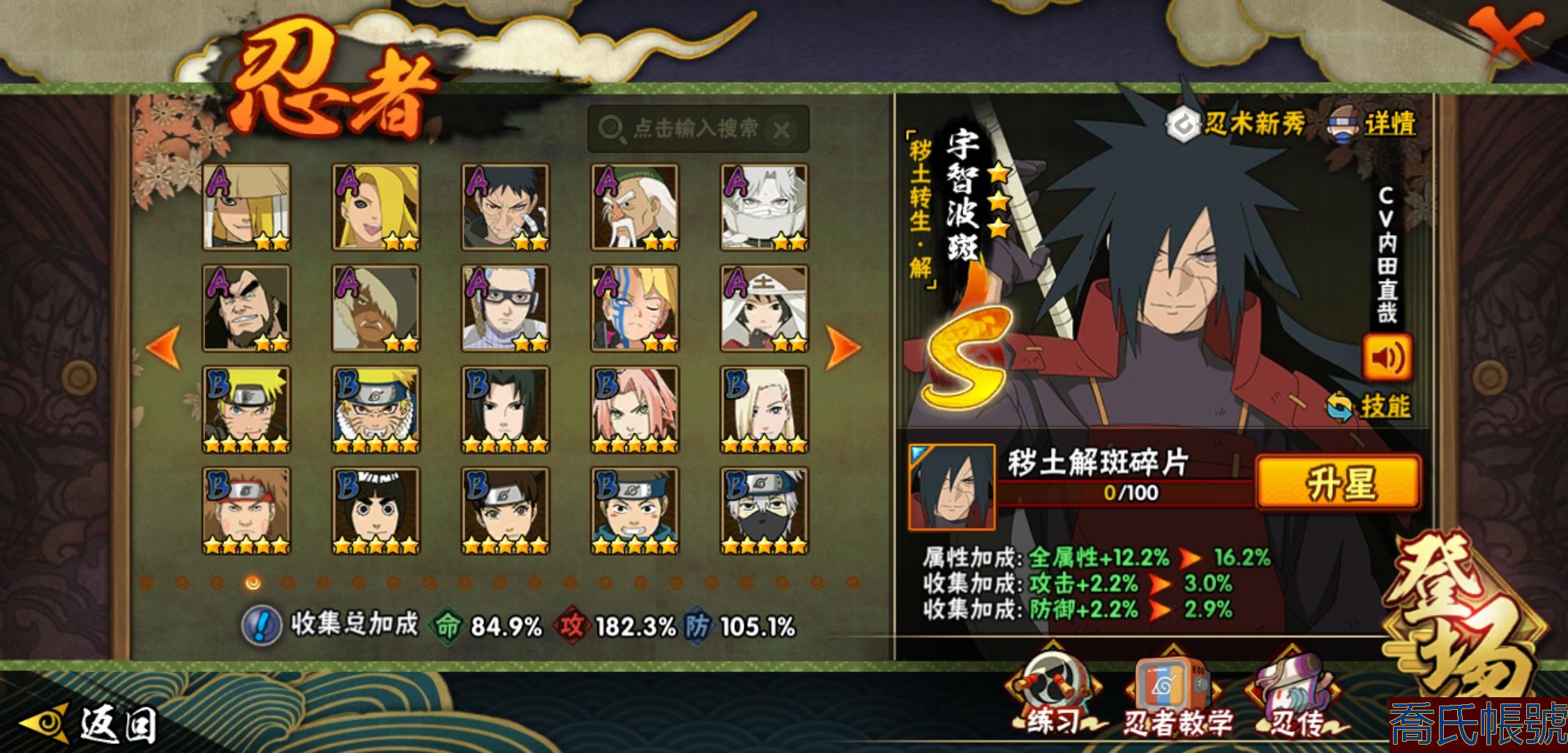 【OBHLLHW998042】戰鬥力:1263W+;段位:中忍1階;本服排名:105;戰區排名:未上榜;VIP11級;S忍28個;A忍42個;通靈獸20個;S忍:暴怒第六尾漩渦鳴人,九喇嘛連結漩渦鳴人,永恆萬花筒宇智波佐助,忍界大戰春野櫻,須佐能乎旗木卡卡西,舞之豪傑自來也,傳說中的三忍自來也,大蛇丸,波風水門,木葉創立千手柱間,穢土轉生千手柱間,穢土轉生宇智波斑,木葉創立宇智波斑,穢土轉生解宇智波斑,須佐能乎宇智波鼬,穢土轉生宇智波鼬,須佐能乎宇智波止水,白面具宇智波斑,忍界大戰宇智波帶土,紅夜之刃神秘面具男,四代目風影羅砂,忍界大戰大野木,天道佩恩,超佩恩天道,仙人模式藥師兜,最終章大筒木舍人,大筒木桃式,大筒木金式;A忍:邁特凱(5星),猿飛阿斯瑪(5星),幹柿鬼鮫(5星),疾風傳我愛羅(4星),蠍(4星),緋流琥蠍(3星),飛段(3星),死司憑血飛段(3星),須佐能乎宇智波佐助,宇智波泉奈,忍界大戰秋道丁次,忍界大戰日向寧次,忍界大戰李洛克,元氣夏日旗木卡卡西,宇智波止水,青年波風水門,忍界大戰我愛羅,近松十人衛千代,五代目水影照美冥,穢土轉生桃地再不斬,奇拉比,忍界大戰奇拉比,青年艾,漂泊武士千手扉間,不緣,不動,青年長門,漂泊浪客佩恩六道,小南,漂泊浪客小南,穢土轉生角都,宇智波鼬,迪達拉,穢土轉生迪達拉,漂泊浪客宇智波帶土,俠隱江湖大野木,火之意志繼承者卑留呼,羈絆神農,五代目雷影達魯伊,六代目水影長十郎,桃式顯現漩渦博人,四代目土影黑土;通靈獸:忍犬,藍蛇,砂之守鶴,蛤蟆吉,忍龜,鐮鼬,猿魔,山椒魚,蜃,蛤蟆仙人,鮫鯊,蛤蟆健,蛞蝓,烏鴉,蛤蟆龍,蛤蟆廣,熊貓,夢貘,鷹;時裝:百戰大蛇丸,百戰佩恩天道,桀驁之刃猿飛阿斯瑪,蜀面豪傑舞之豪傑自來也,百戰波風水門,百戰宇智波鼬須佐能乎,太極靈韻日向花火武當宗師,熊貓少女天天峨眉宗師,烈土霓裳黑土四代目土影,風之守護我愛羅忍界大戰,傳說的光芒波風水門,睿勇新星千手扉間少年,血霧怪人幹柿鬼鮫,緋櫻綻放春野櫻百豪,龍的傳人李洛克截拳宗師,編織虛實宇智波鼬,剎那的藝術迪達拉,夏日衝浪旗木卡卡西元氣夏日;【2474】28s 42a