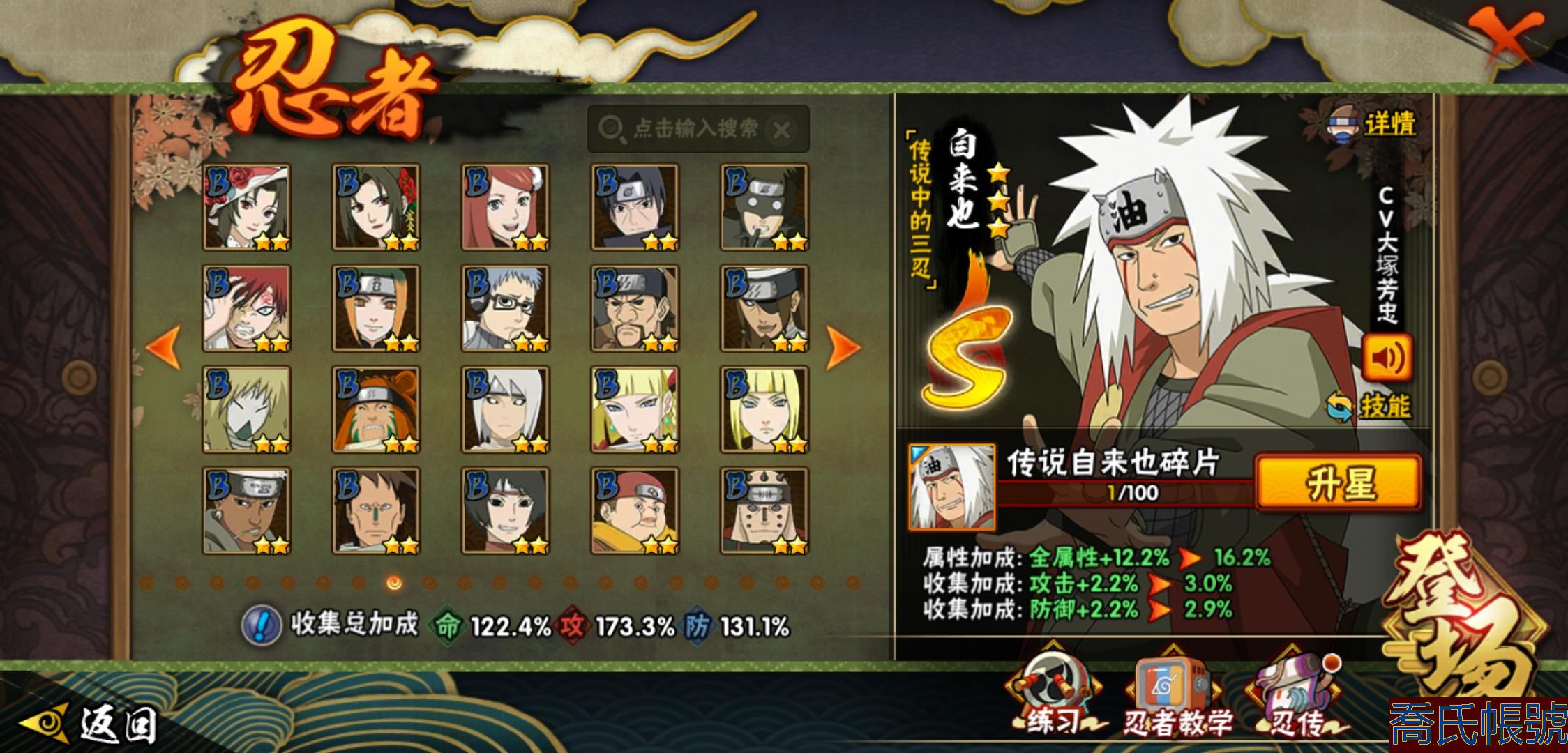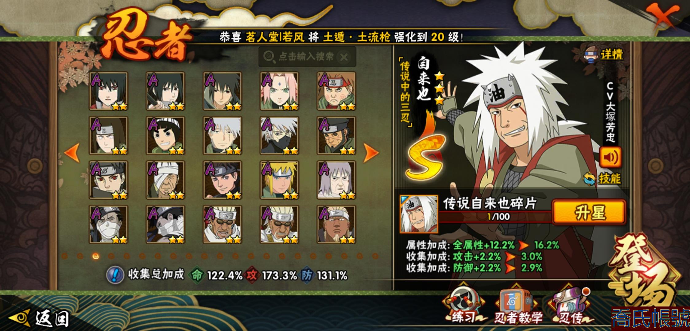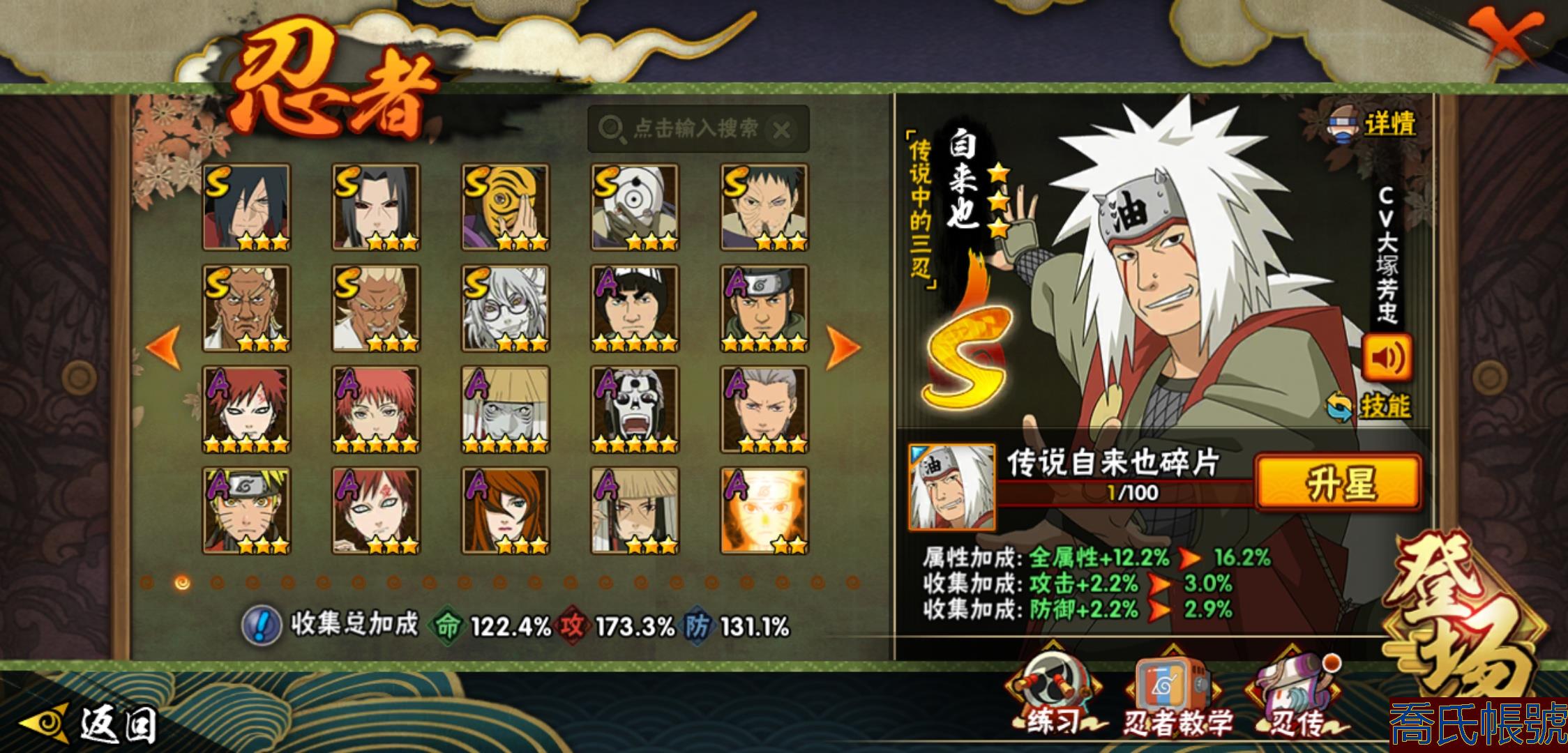 【OBHLLHW264242】戰鬥力:1361W+;段位:見習1階;本服排名:522;戰區排名:未上榜;VIP8級;S忍28個;A忍47個;通靈獸19個;S忍:波風水門(4星),須佐能乎宇智波鼬(4星),天道佩恩(4星),九喇嘛連結漩渦鳴人,永恆萬花筒宇智波佐助,忍界大戰春野櫻,須佐能乎旗木卡卡西,自來也,舞之豪傑自來也,傳說中的三忍自來也,大蛇丸,綱手,穢土轉生波風水門,猿飛日斬,穢土轉生猿飛日斬,穢土轉生千手扉間,千手柱間,穢土轉生千手柱間,宇智波斑,穢土轉生宇智波斑,穢土轉生解宇智波斑,穢土轉生宇智波鼬,神秘面具男,白面具宇智波斑,忍界大戰宇智波帶土,四代目雷影艾,忍界大戰艾,仙人模式藥師兜;A忍:邁特凱(5星),猿飛阿斯瑪(5星),疾風傳我愛羅(5星),蠍(5星),幹柿鬼鮫(5星),死司憑血飛段(5星),飛段(4星),仙人模式漩渦鳴人(3星),忍界大戰我愛羅(3星),五代目水影照美冥(3星),宇智波鼬(3星),九尾查克拉漩渦鳴人,萬花筒寫輪眼宇智波佐助,須佐能乎宇智波佐助,宇智波泉奈,百豪春野櫻,忍界大戰秋道丁次,忍界大戰日向寧次,忍界大戰李洛克,幻之真容旗木卡卡西,萬花筒寫輪眼旗木卡卡西,穢土轉生猿飛阿斯瑪,宇智波止水,志村團藏,火影繼承人猿飛日斬,青年波風水門,近松十人衛千代,桃地再不斬,穢土轉生桃地再不斬,奇拉比,忍界大戰奇拉比,青年艾,忍界大戰土臺,半蛇斗篷藥師兜,青年長門,小南,角都,地怨虞角都,曉大蛇丸,緋流琥蠍,迪達拉,穢土轉生迪達拉,猿飛木葉丸,五代目雷影達魯伊,桃式顯現漩渦博人,六代目水影長十郎,四代目土影黑土;通靈獸:忍犬,藍蛇,蛤蟆吉,忍龜,鐮鼬,猿魔,山椒魚,蜃,蛤蟆仙人,鮫鯊,蛤蟆健,烏鴉,蛤蟆龍,蛤蟆廣,夢貘,砂之守鶴,蛞蝓,鷹,蜘蛛;時裝:百戰大蛇丸,百戰波風水門,百戰宇智波鼬須佐能乎,蜀面豪傑舞之豪傑自來也,百戰佩恩天道,太極靈韻日向花火武當宗師,緋櫻綻放春野櫻百豪,血霧怪人幹柿鬼鮫,龍的傳人李洛克截拳宗師,熊貓少女天天峨眉宗師,傳說的光芒波風水門,編織虛實宇智波鼬,可愛睡衣漩渦鳴人,剎那的藝術迪達拉,純白之心白;【18】