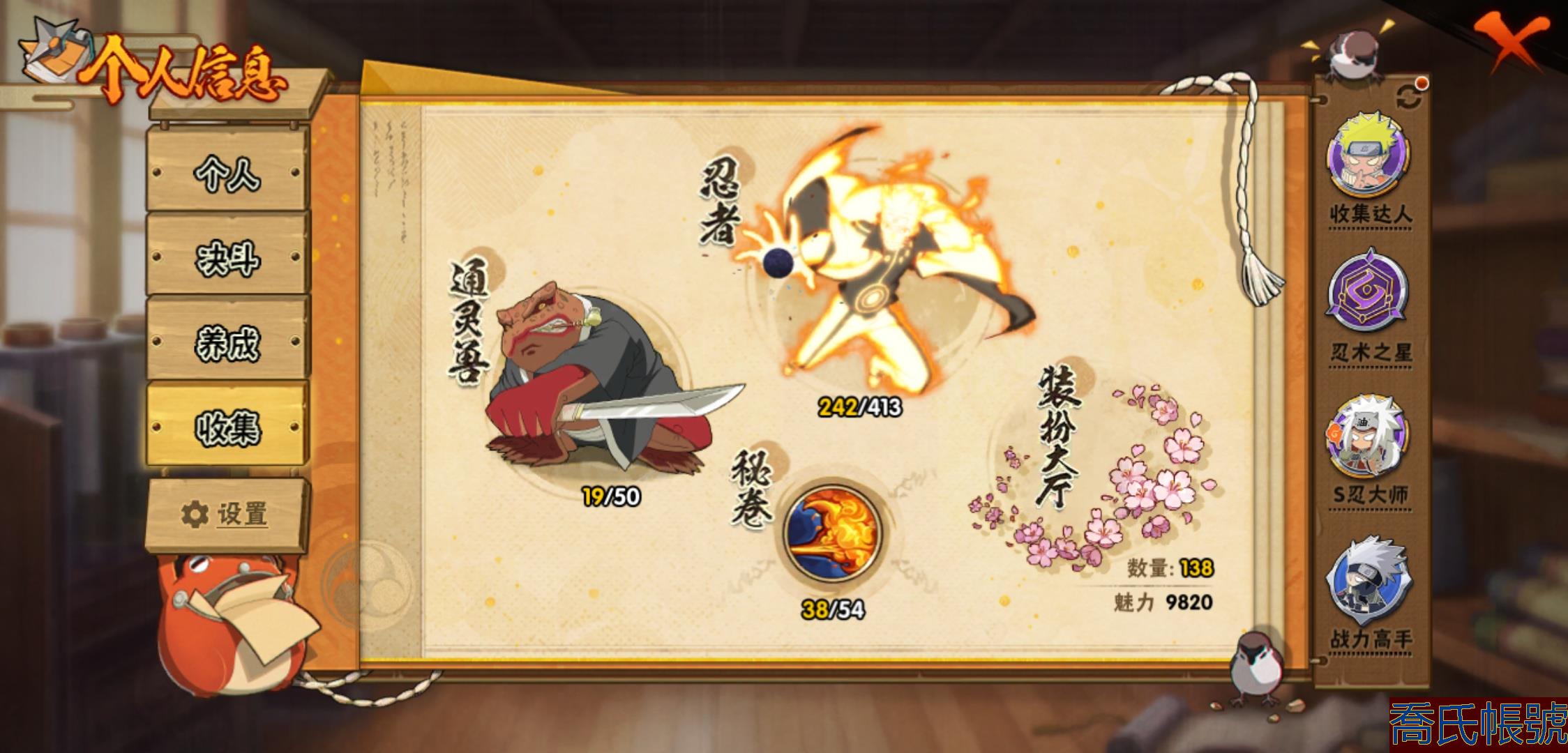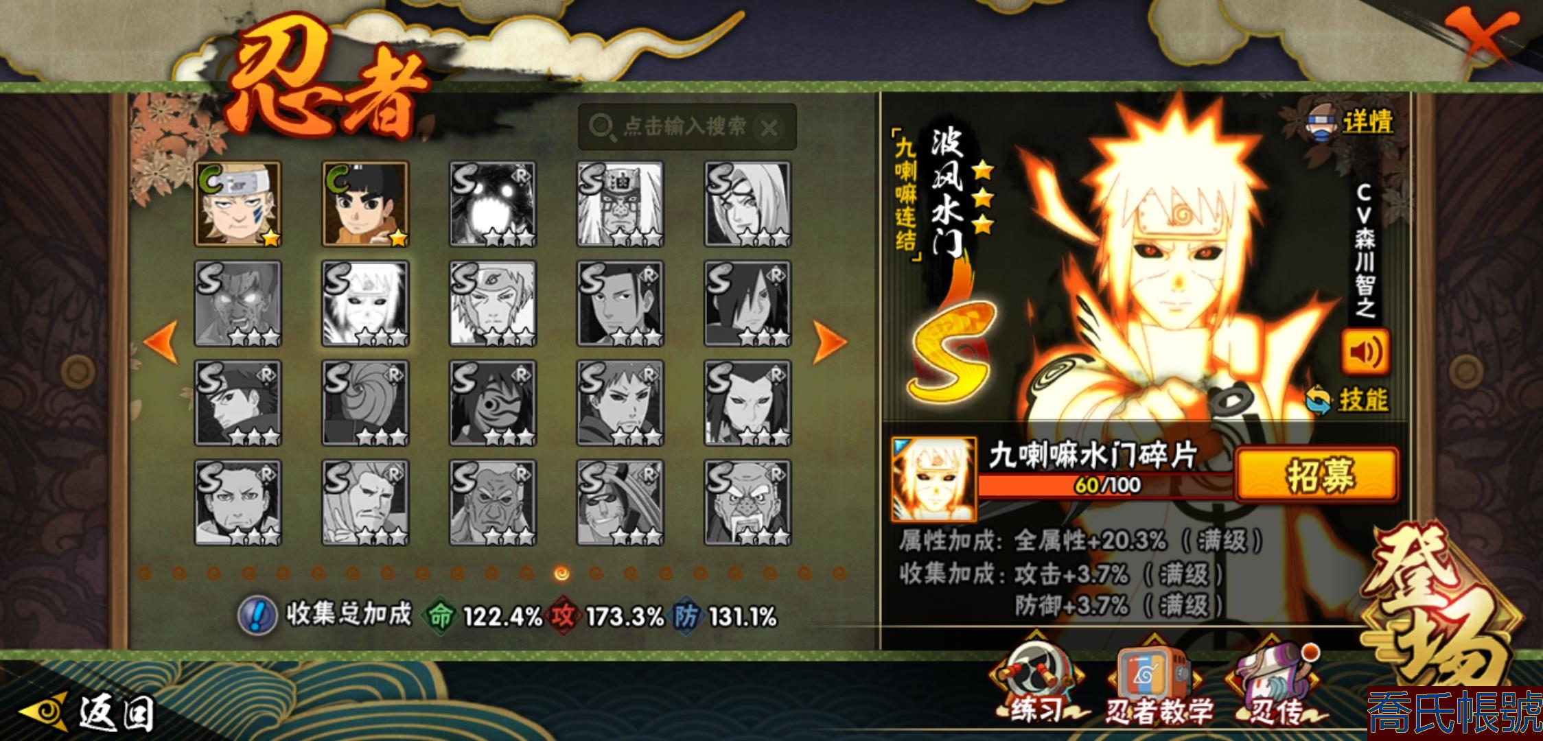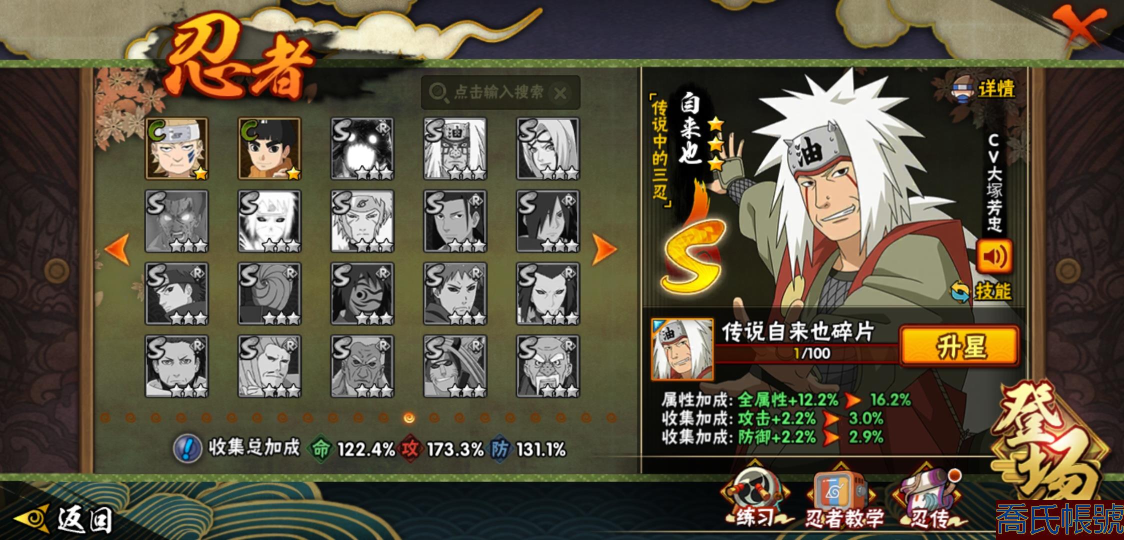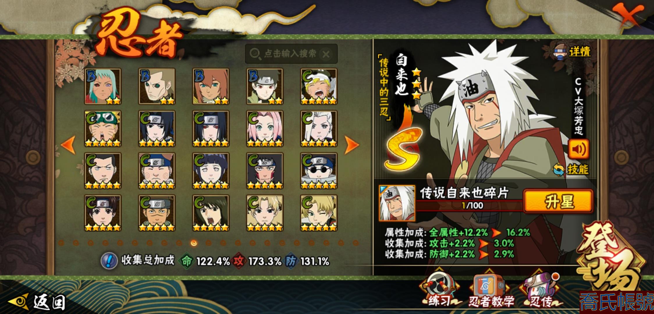 【OBHLLHW264242】戰鬥力:1361W+;段位:見習1階;本服排名:522;戰區排名:未上榜;VIP8級;S忍28個;A忍47個;通靈獸19個;S忍:波風水門(4星),須佐能乎宇智波鼬(4星),天道佩恩(4星),九喇嘛連結漩渦鳴人,永恆萬花筒宇智波佐助,忍界大戰春野櫻,須佐能乎旗木卡卡西,自來也,舞之豪傑自來也,傳說中的三忍自來也,大蛇丸,綱手,穢土轉生波風水門,猿飛日斬,穢土轉生猿飛日斬,穢土轉生千手扉間,千手柱間,穢土轉生千手柱間,宇智波斑,穢土轉生宇智波斑,穢土轉生解宇智波斑,穢土轉生宇智波鼬,神秘面具男,白面具宇智波斑,忍界大戰宇智波帶土,四代目雷影艾,忍界大戰艾,仙人模式藥師兜;A忍:邁特凱(5星),猿飛阿斯瑪(5星),疾風傳我愛羅(5星),蠍(5星),幹柿鬼鮫(5星),死司憑血飛段(5星),飛段(4星),仙人模式漩渦鳴人(3星),忍界大戰我愛羅(3星),五代目水影照美冥(3星),宇智波鼬(3星),九尾查克拉漩渦鳴人,萬花筒寫輪眼宇智波佐助,須佐能乎宇智波佐助,宇智波泉奈,百豪春野櫻,忍界大戰秋道丁次,忍界大戰日向寧次,忍界大戰李洛克,幻之真容旗木卡卡西,萬花筒寫輪眼旗木卡卡西,穢土轉生猿飛阿斯瑪,宇智波止水,志村團藏,火影繼承人猿飛日斬,青年波風水門,近松十人衛千代,桃地再不斬,穢土轉生桃地再不斬,奇拉比,忍界大戰奇拉比,青年艾,忍界大戰土臺,半蛇斗篷藥師兜,青年長門,小南,角都,地怨虞角都,曉大蛇丸,緋流琥蠍,迪達拉,穢土轉生迪達拉,猿飛木葉丸,五代目雷影達魯伊,桃式顯現漩渦博人,六代目水影長十郎,四代目土影黑土;通靈獸:忍犬,藍蛇,蛤蟆吉,忍龜,鐮鼬,猿魔,山椒魚,蜃,蛤蟆仙人,鮫鯊,蛤蟆健,烏鴉,蛤蟆龍,蛤蟆廣,夢貘,砂之守鶴,蛞蝓,鷹,蜘蛛;時裝:百戰大蛇丸,百戰波風水門,百戰宇智波鼬須佐能乎,蜀面豪傑舞之豪傑自來也,百戰佩恩天道,太極靈韻日向花火武當宗師,緋櫻綻放春野櫻百豪,血霧怪人幹柿鬼鮫,龍的傳人李洛克截拳宗師,熊貓少女天天峨眉宗師,傳說的光芒波風水門,編織虛實宇智波鼬,可愛睡衣漩渦鳴人,剎那的藝術迪達拉,純白之心白;【18】