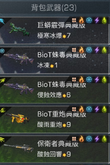 武器(蛛毒霰彈噴火器白板雪地可賣,5星護甲,3~4星詛咒電力護盾可賣,3~4星頭盔可賣)