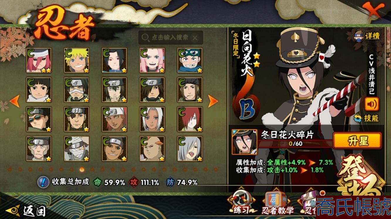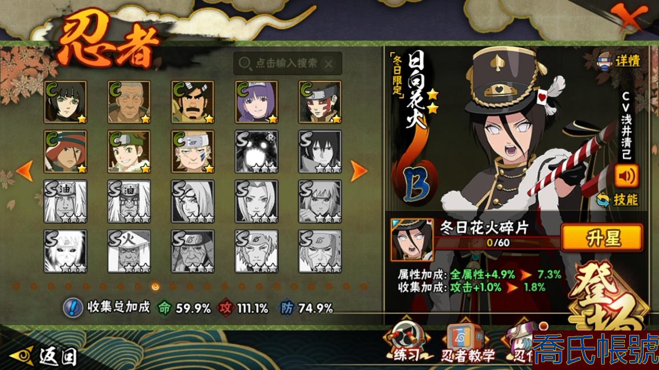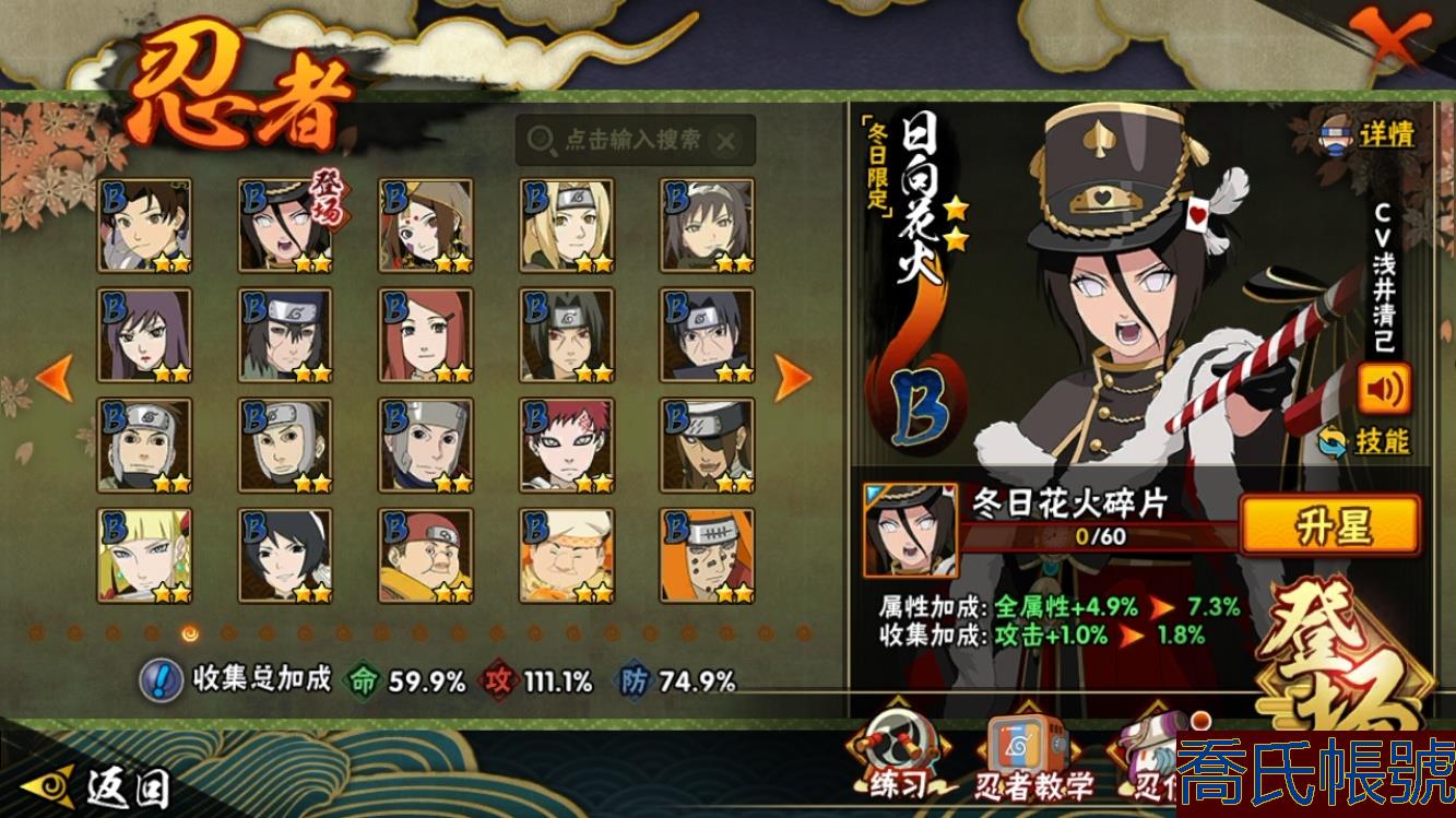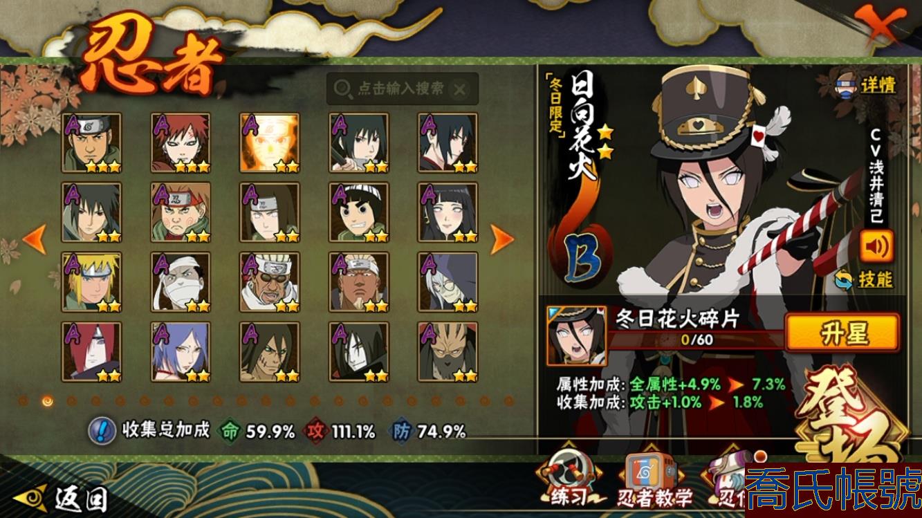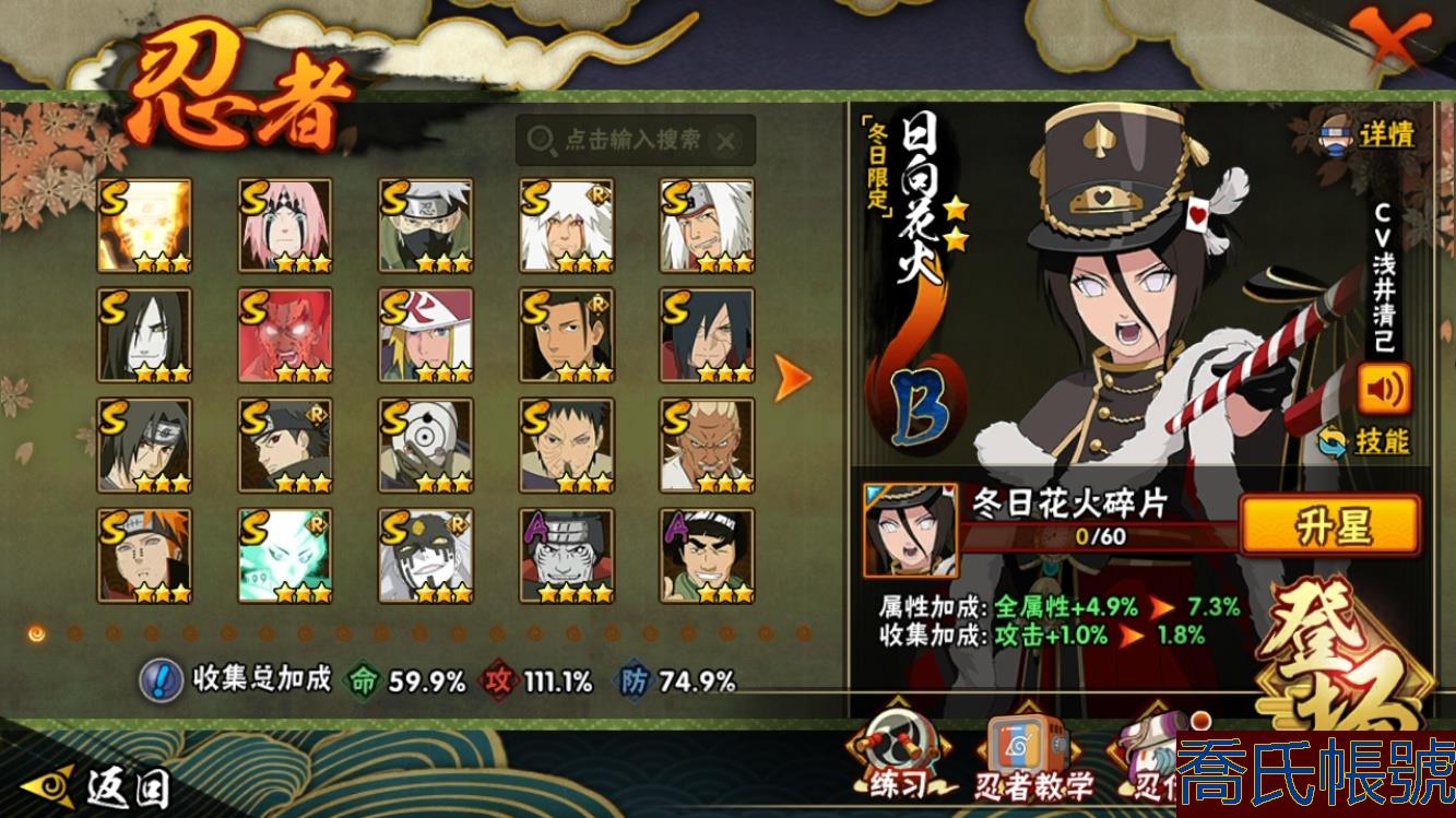 【OBHLLXQ847942】戰鬥力:737W+;段位:中忍2階;本服排名:833;戰區排名:未上榜;VIP12級;S忍18個;A忍31個;通靈獸15個;S忍:大蛇丸,大筒木桃式,白面具宇智波斑,忍界大戰宇智波帶土,死門邁特凱,須佐能乎宇智波止水,忍界大戰春野櫻,天道佩恩,傳說中的三忍自來也,九喇嘛連結漩渦鳴人,穢土轉生解宇智波斑,波風水門,須佐能乎宇智波鼬,木葉創立千手柱間,忍界大戰艾,最終章大筒木舍人,舞之豪傑自來也,須佐能乎旗木卡卡西;A忍:幹柿鬼鮫,猿飛阿斯瑪,疾風傳我愛羅,九尾查克拉漩渦鳴人,須佐能乎宇智波佐助,俠隱江湖宇智波佐助,宇智波泉奈,忍界大戰秋道丁次,忍界大戰日向寧次,忍界大戰李洛克,最終章日向雛田,青年波風水門,漂泊武士桃地再不斬,奇拉比,青年艾,俠隱江湖藥師兜,青年長門,漂泊浪客小南,穢土轉生角都,曉大蛇丸,緋流琥蠍,蠍,新春限定宇智波鼬,飛段,死司憑血飛段,漂泊浪客宇智波帶土,俠隱江湖大野木,羈絆神農,六代目水影長十郎,桃式顯現漩渦博人,四代目土影黑土;通靈獸:忍犬,藍蛇,砂之守鶴,蛤蟆吉,忍龜,鐮鼬,猿魔,山椒魚,蜃,蛤蟆仙人,鮫鯊,蛤蟆健,烏鴉,熊貓,蛤蟆龍;時裝:百戰波風水門,百戰大蛇丸,百戰佩恩天道,百戰宇智波鼬須佐能乎,燼影絕蹤宇智波佐助俠隱江湖,終焉剎寂宇智波帶土漂泊浪客,血霧怪人幹柿鬼鮫,龍的傳人李洛克截拳宗師,烈土霓裳黑土四代目土影,緋櫻綻放春野櫻百豪,傳說的光芒波風水門,命定之戰宇智波佐助疾風傳,熊貓少女天天峨眉宗師;【529】【蘋果QQ】